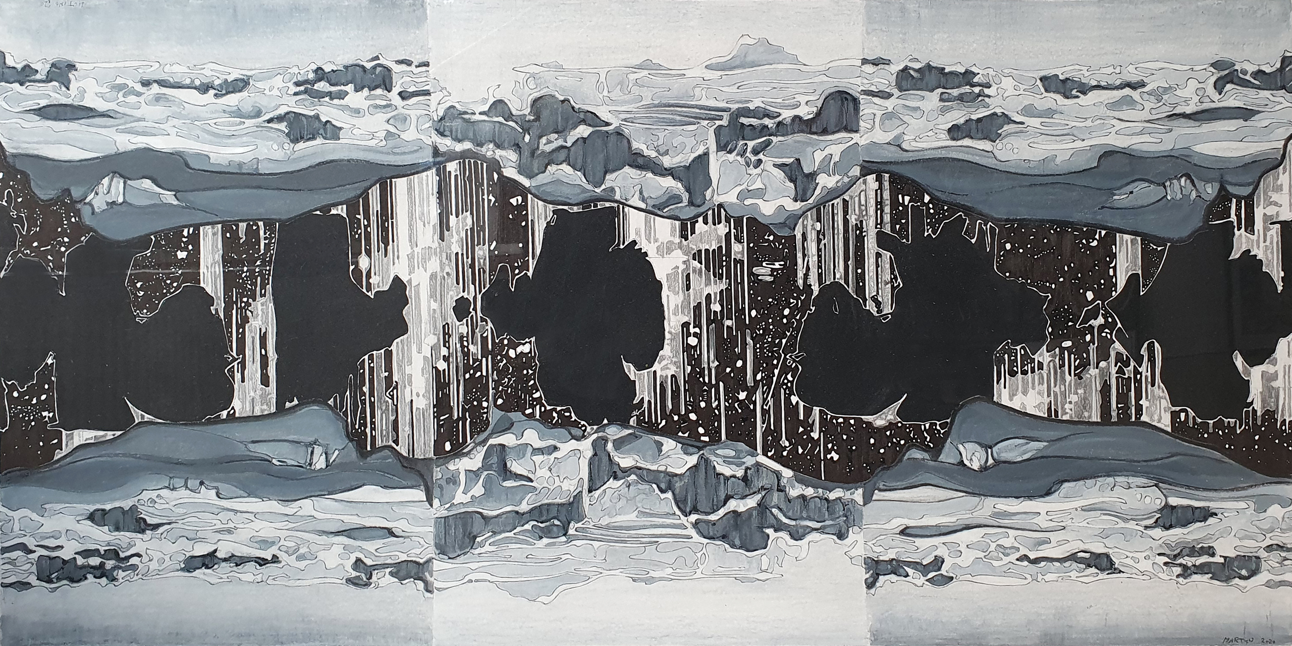 Het beelden werk van Martijn Huting, tekeningen, oliepastels, collages en polaroids, zweeft tussen abstract en figuratief, tussen droom en werkelijkheid, tussen heden en verleden, tussen feit en fictie. Voortkomend uit de architectuur, verwijzend naar de (kunst) geschiedenis, de literatuur en zichzelf, wordt een complex van betekenissen en verhalen ontwikkeld, waarin de tekeningen en oliepastels fungeren als uitvergrote momenten, om later weer in het verhaal te worden opgenomen.
