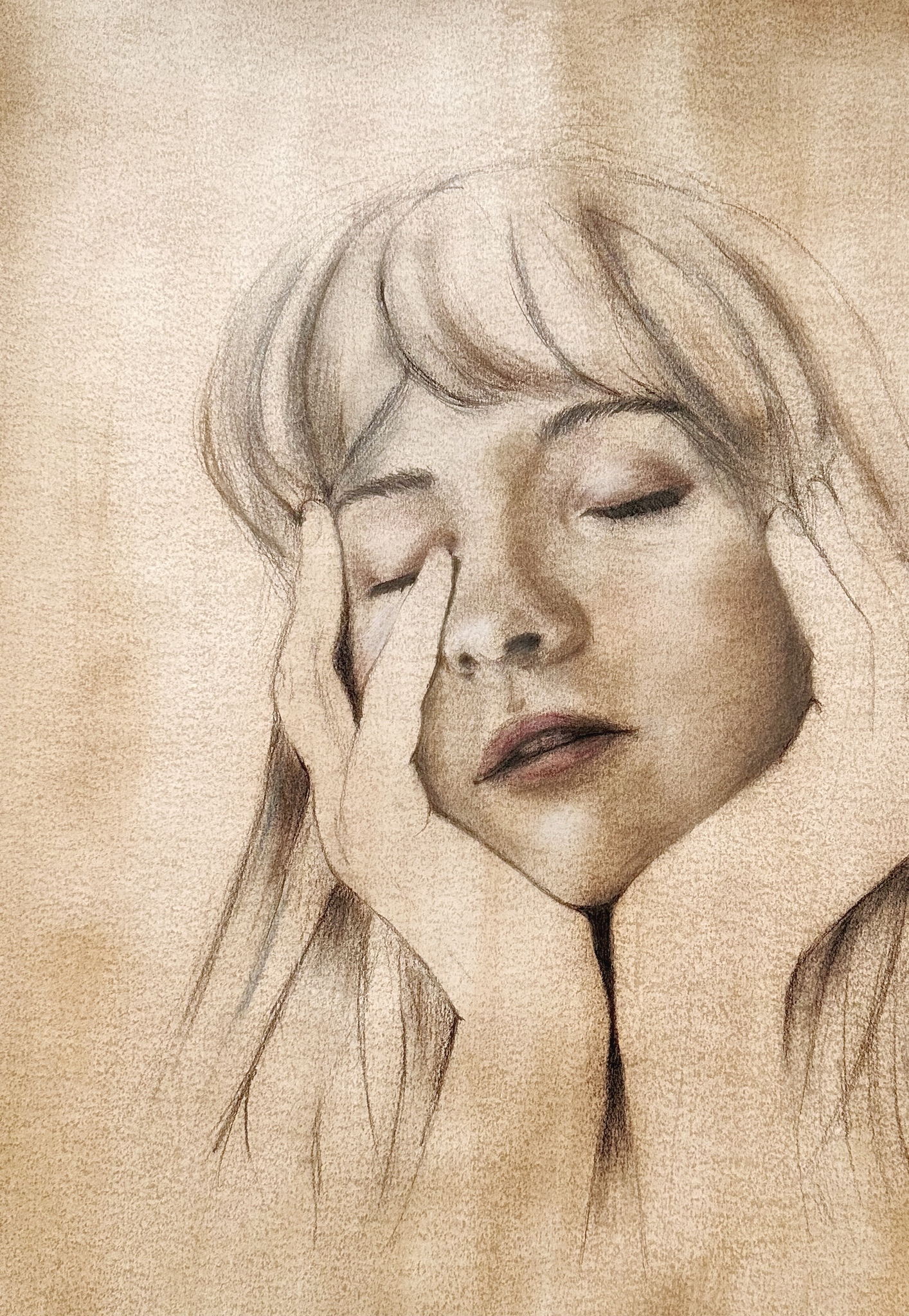 Expressief Portret Papier Realistisch Pastel Grafiet Vrouwenportret Bister