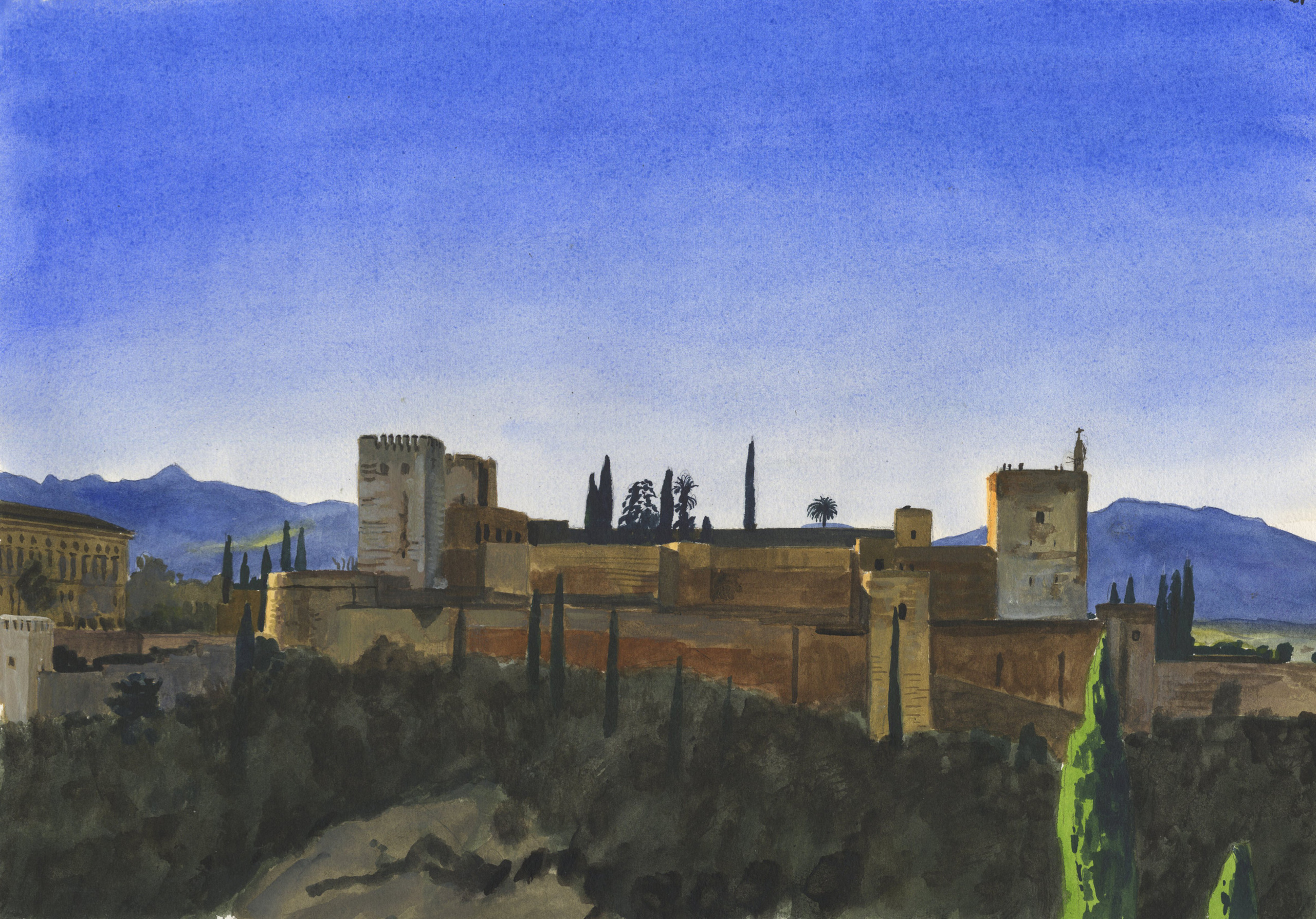 Aquarel Tekening Drawing Realisme Realism Spanje Architectuur Architecture Watercolor Kasteel Castle Spain Granada Espana