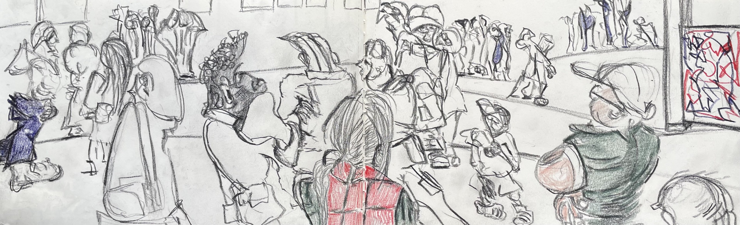 Tekening Mixed Media Crowdscape Contemporary Art Papier