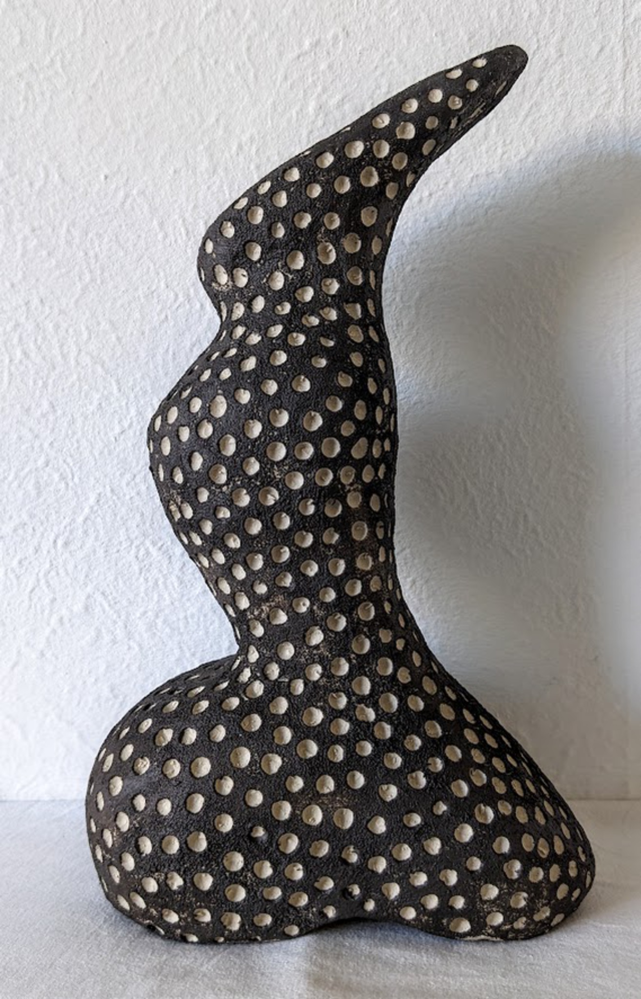Geïnspireerd op de yogahouding "The warrior Pose". Al tekenend tot deze vorm gekomen en daarna opgebouwd met klei.