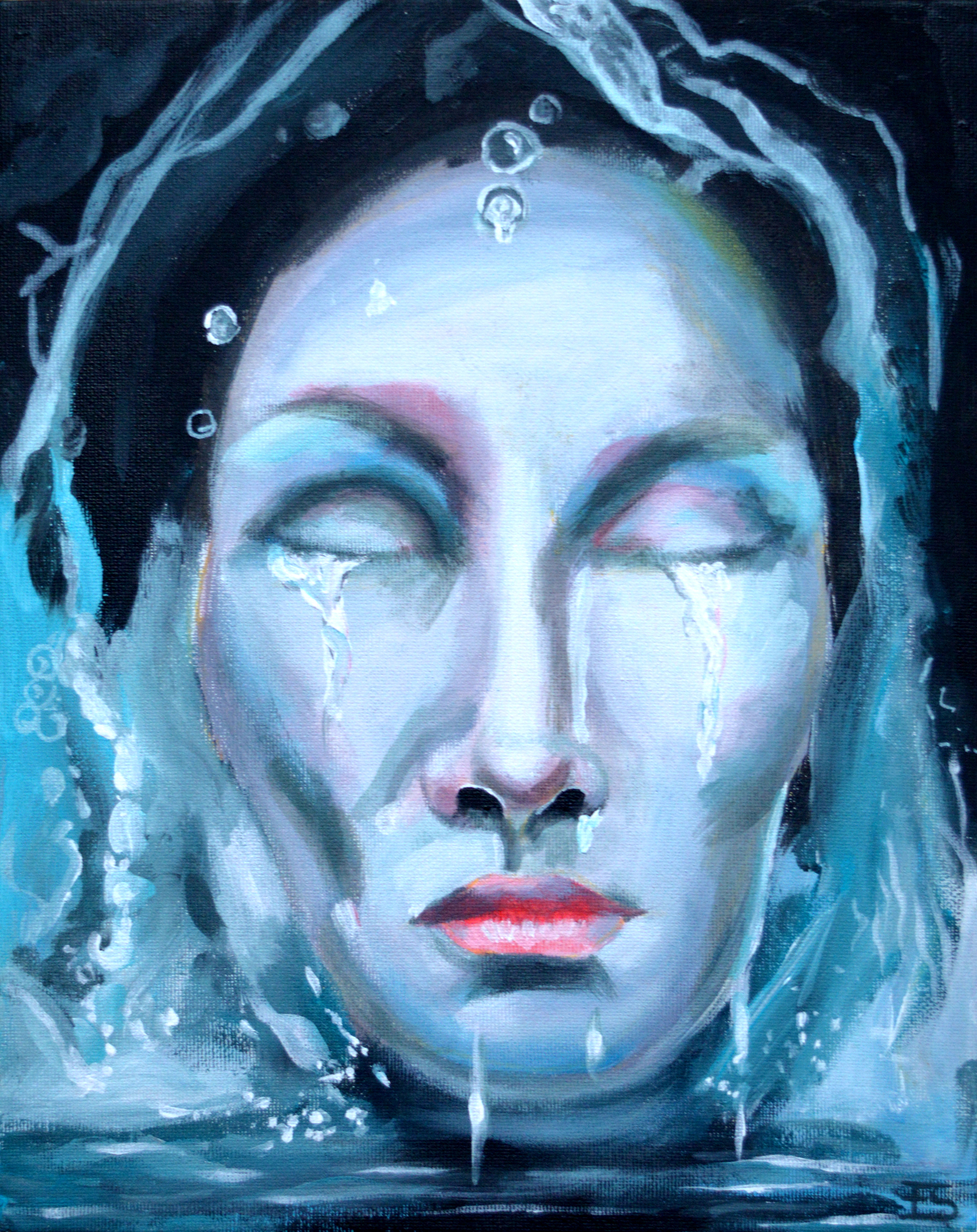 Als je verdrinkt in je eigen tranen. Geschilderd op Canvasboard.