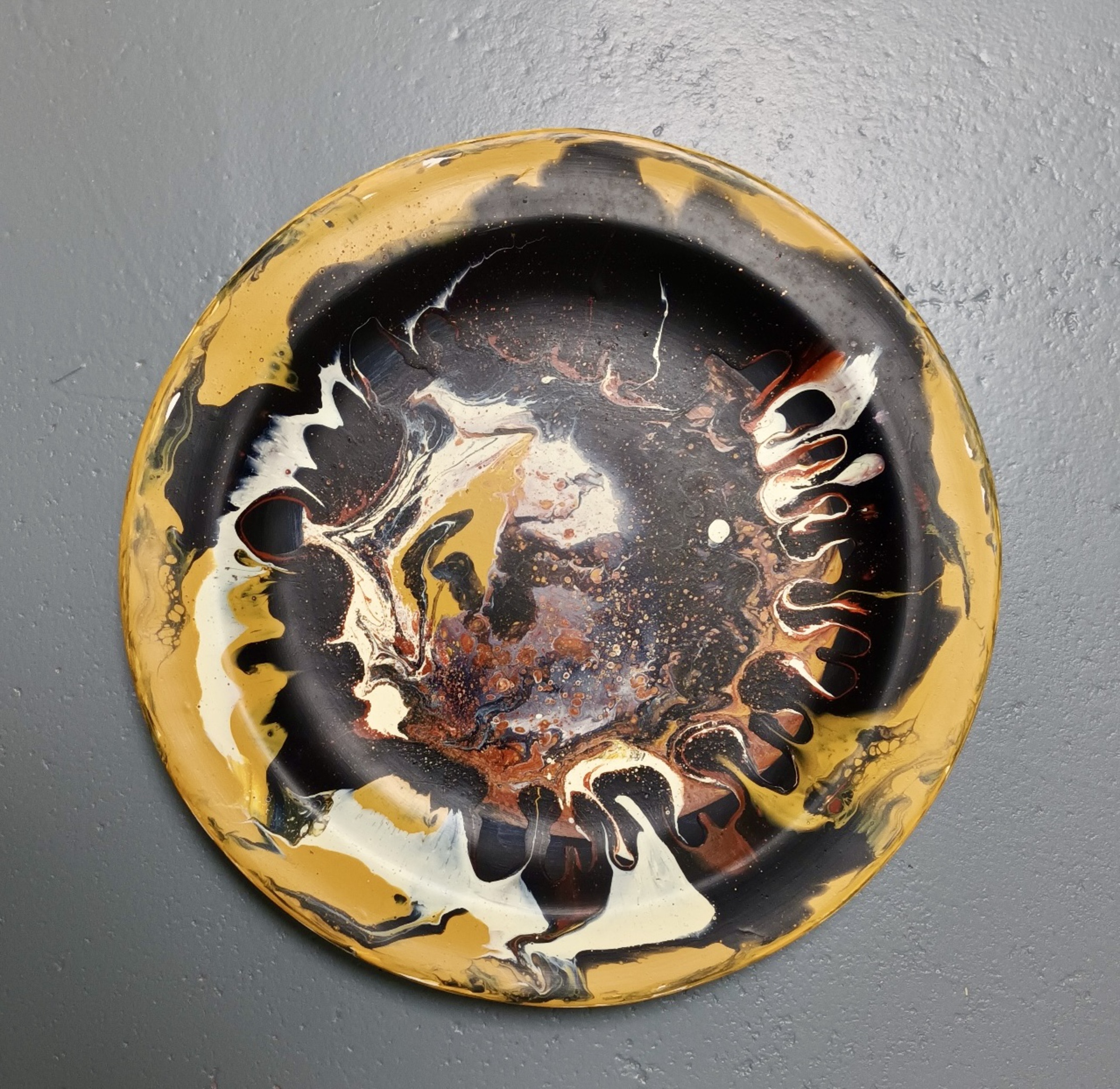Keramiek bord met acryl gietwerk.