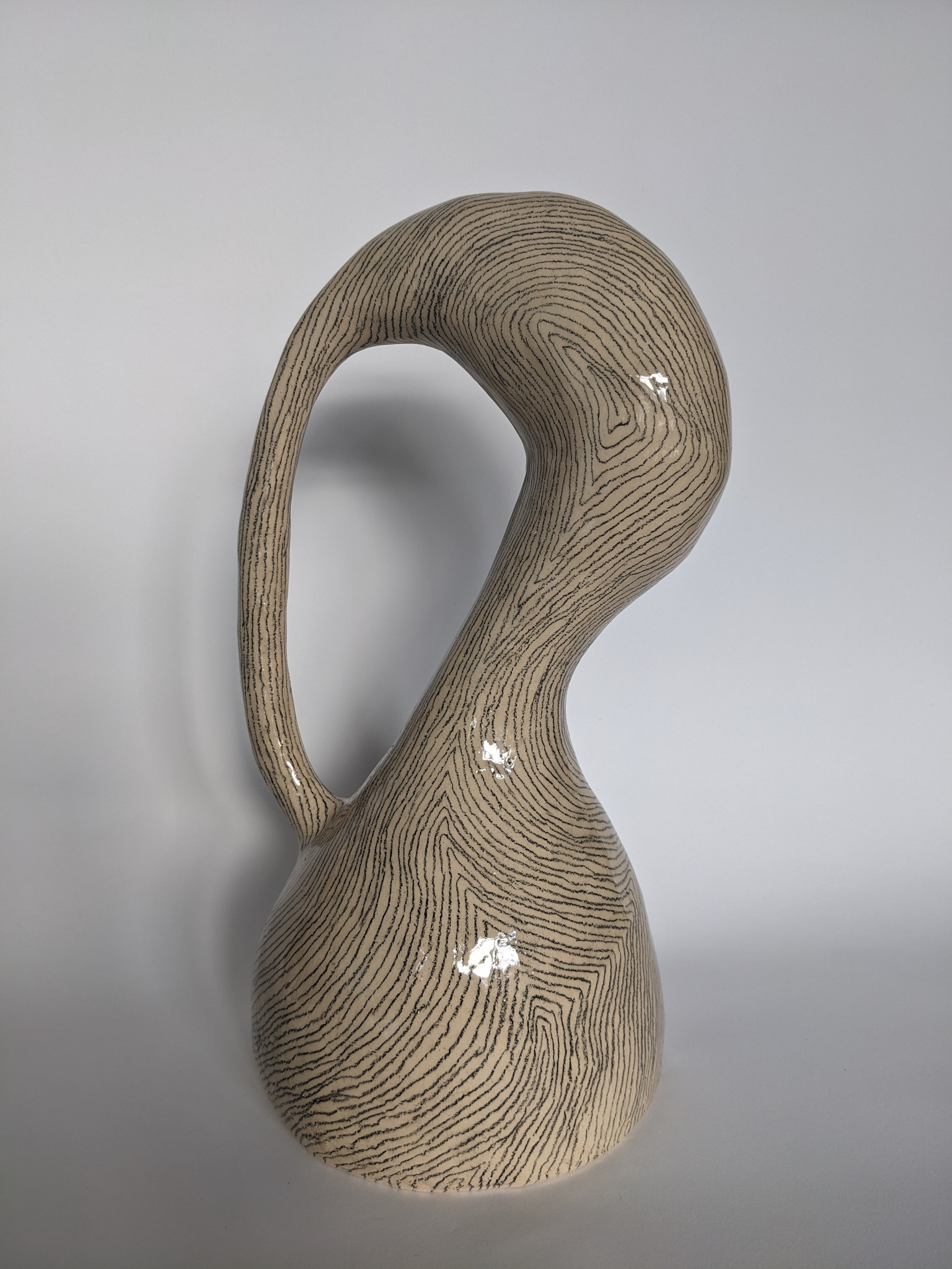 De vorm kwam al werkend tot stand, met mijn handen de klei volgen en kijken welke kant het op gaat. En daarbij kijken naar wat is interessant, wanneer ga je je afvragen wat is het?