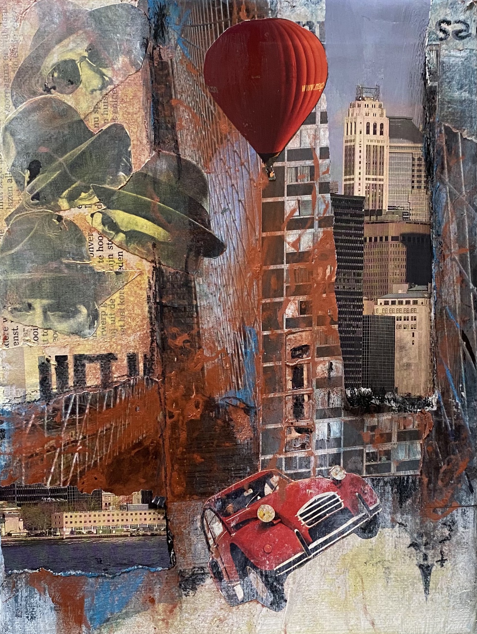 Collage met acryl en pastelkrijt