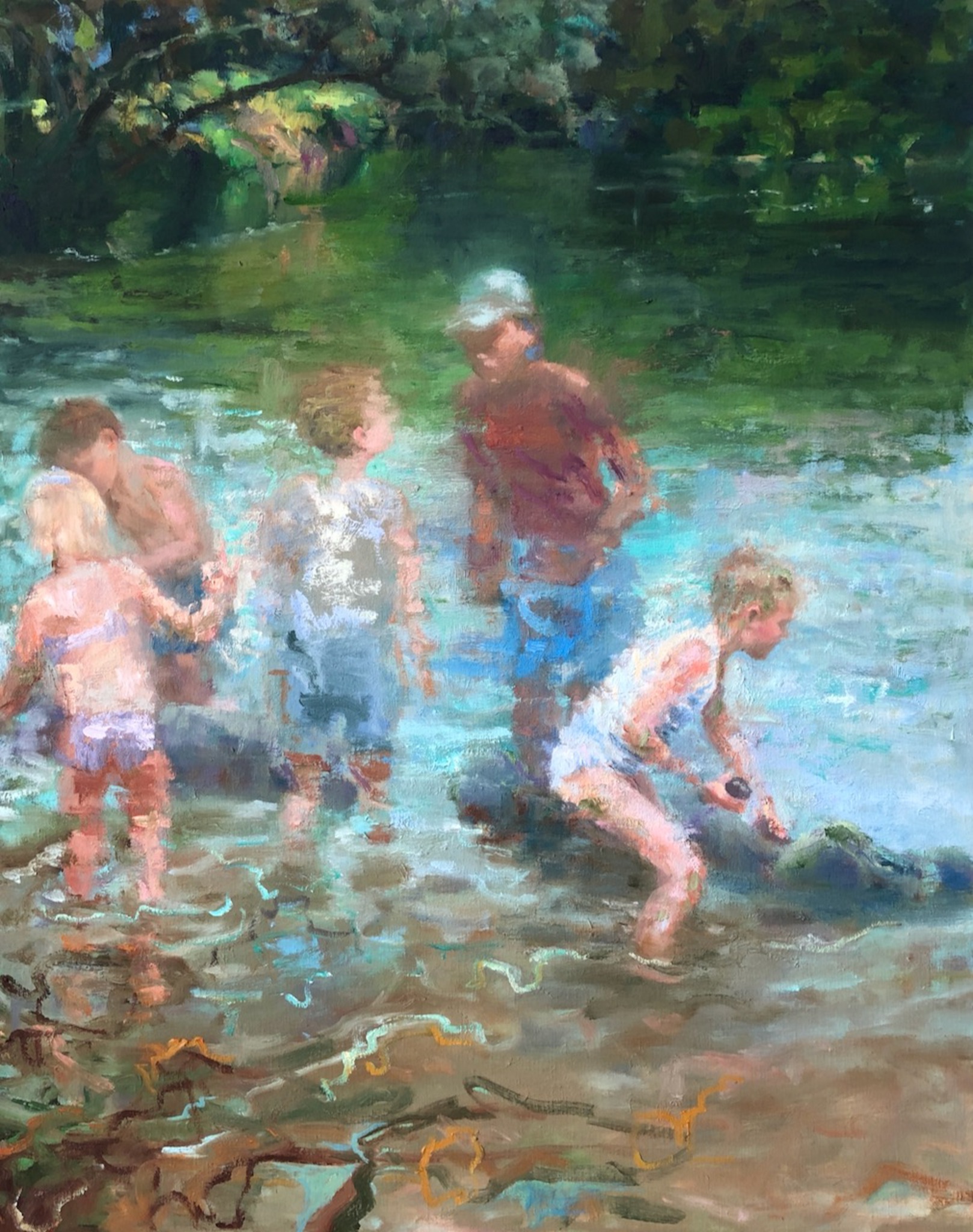 Kinderen in de rivier de Dordogne bouwen een dam