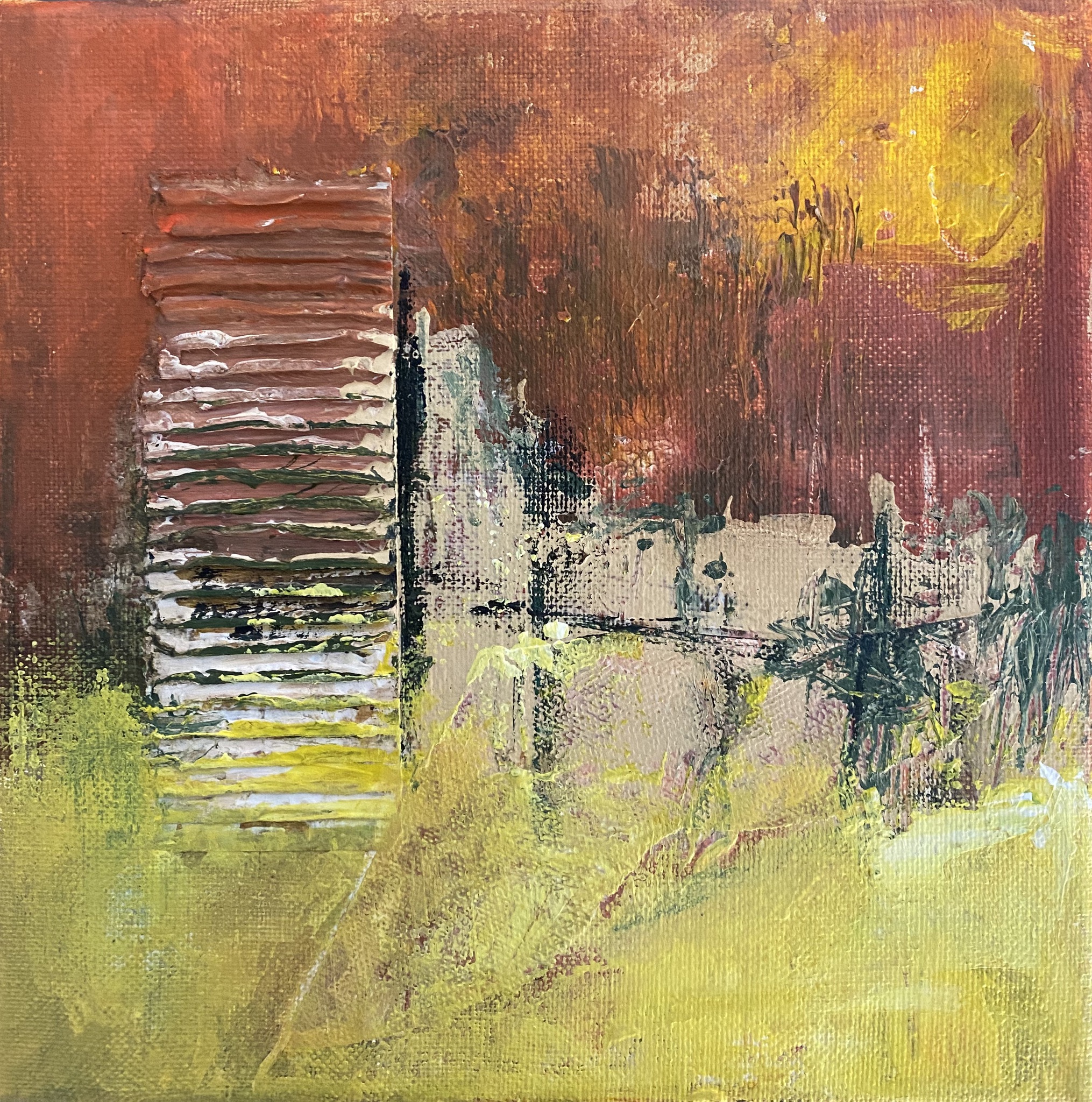 'Het landschap als vertrekpunt'. De natuur wil ik in al haar kleur, licht en donker, vormen en structuren weergeven. Mijn ontwikkeling blijft doorgaan, er is zoveel om naar te kijken en uit te drukken op het doek.