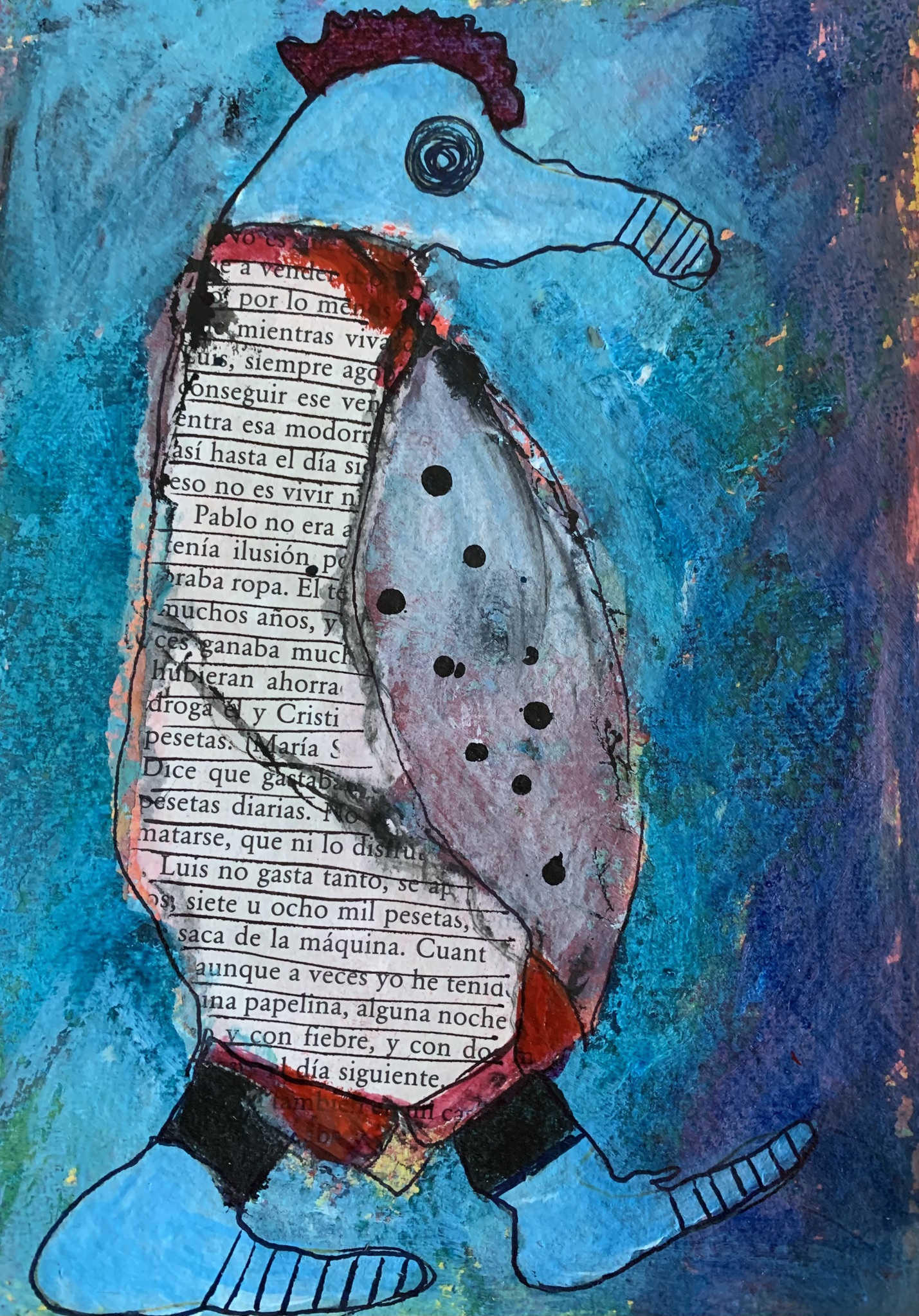 Rood Blauw Blue Mixed Media Red Collage Inkt Spanje Tekst Spain Text Ink