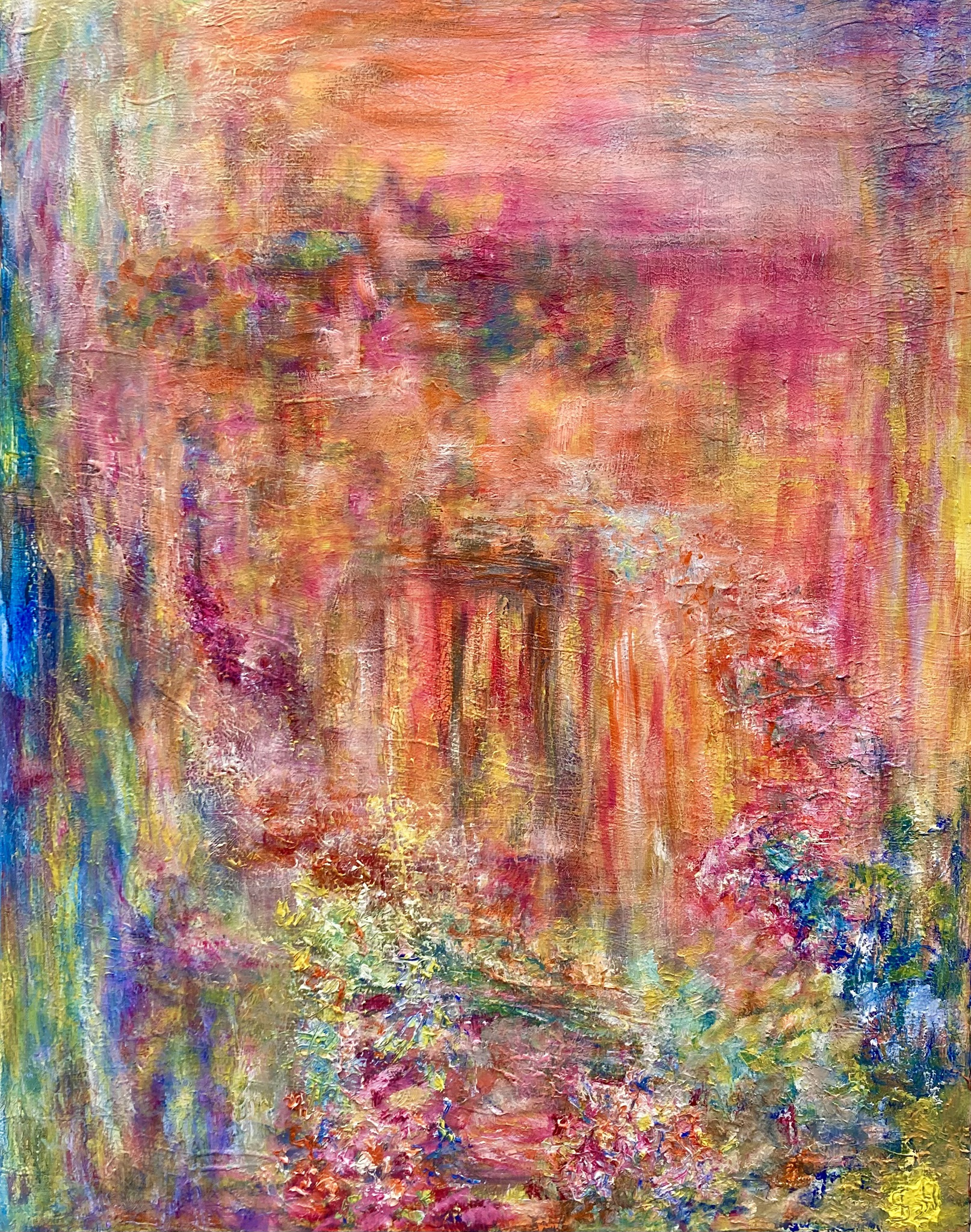 Abstract Rood Oranje Geel Landschap Blauw Paars Groen Kleurrijk Tuin Olieverf Roze Lila Droom Impressionisme Poort Expressionisme Feeëriek