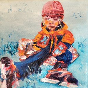 (Kinder)portretten olie op doek. Bijzondere onbevangen alledaagse taferelen.