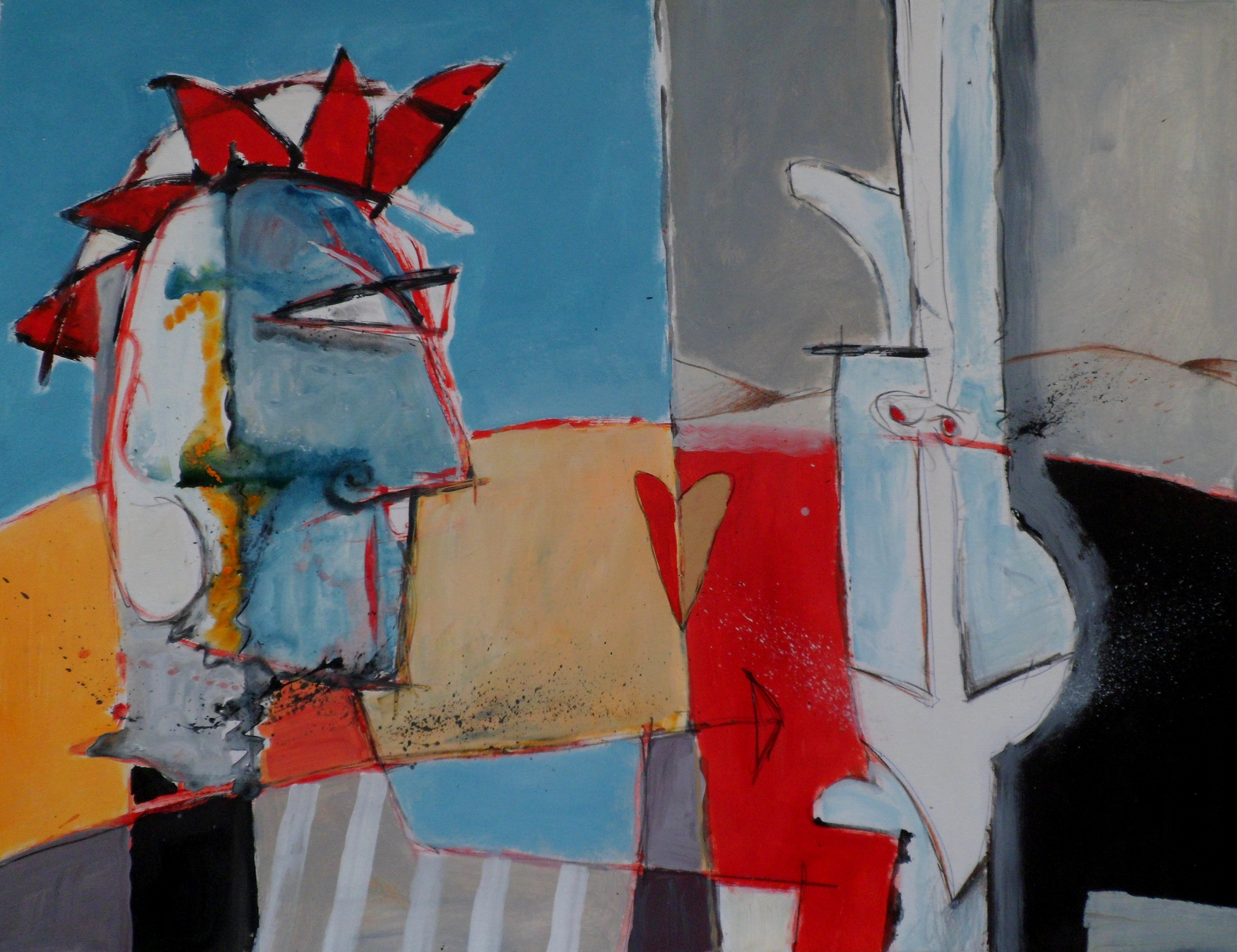 Na jarenlang bezig te zijn geweest met het maken van litho's ben ik overgestapt naar het schilderen omdat mijn manier van werken daar steeds meer om vroeg. Ik hou er van om zonder een specifiek uitgangspunt te beginnen en al werkend tot het uiteindelijke resultaat te komen. En alle technieken te gebruiken die er maar nodig zijn om dat resultaat te bereiken. Inspiratie haal ik uit de natuur,gebeurtenissen om mij heen en de muziek die ik altijd onder mijn werk aan hebt staan.