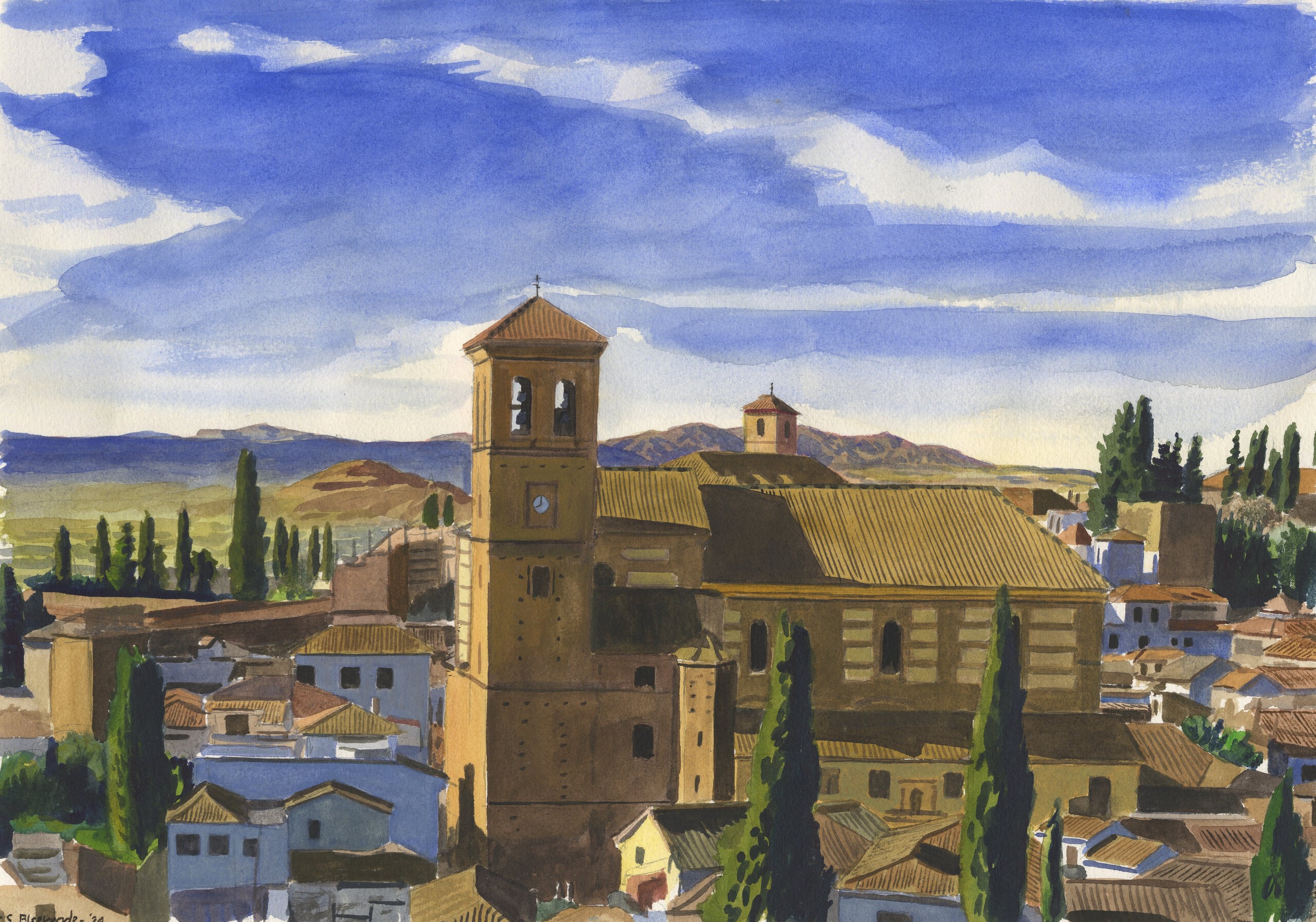 Blauw Blue Kerk Spanje Architectuur Architecture Impressionisme Stad Huizen Church City Spain Houses Impressionism Granada Andalucia Andalusië