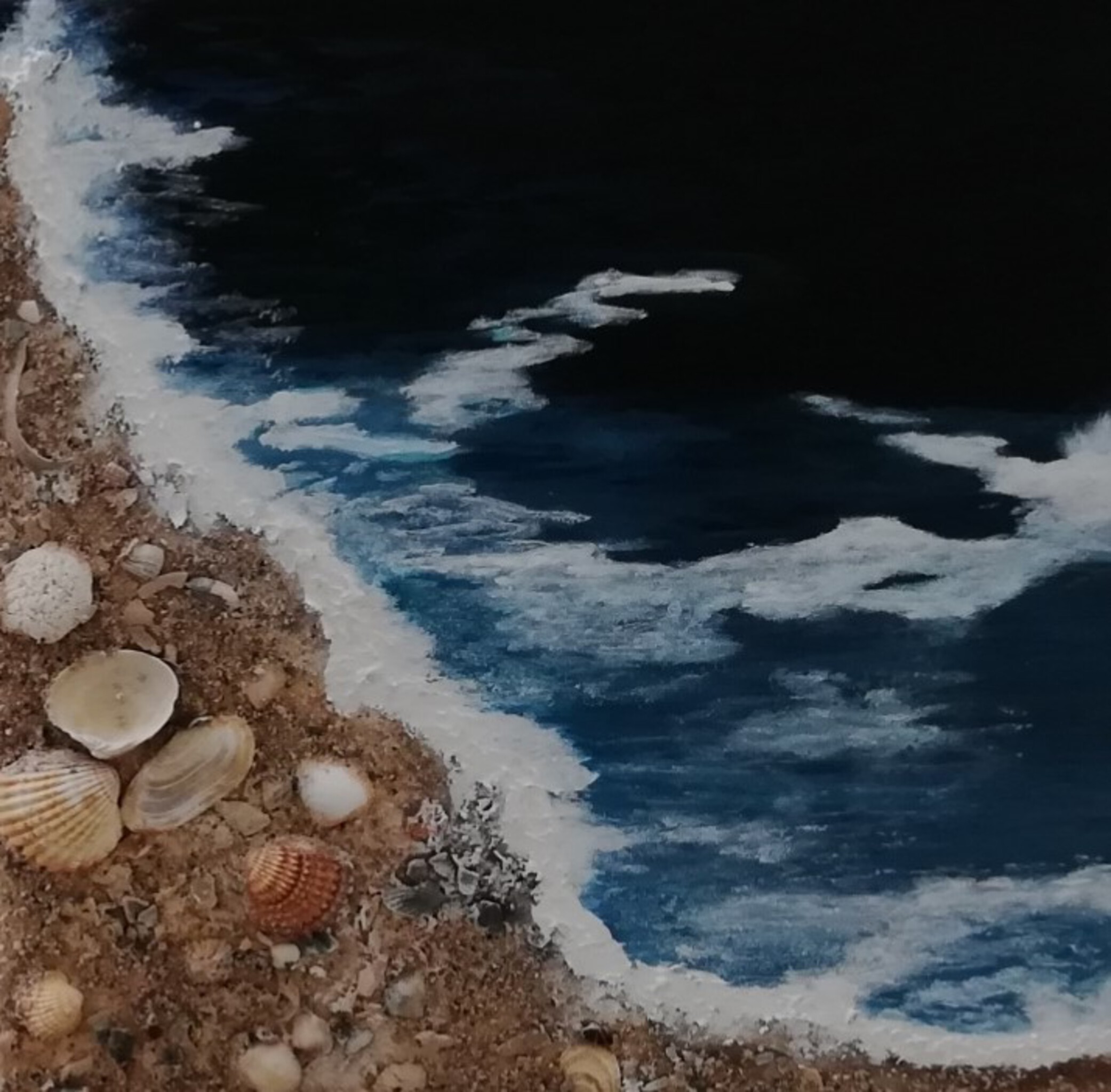 Portugal, blik op de zee van bovenaf, met schelpen en zand uit Portugal