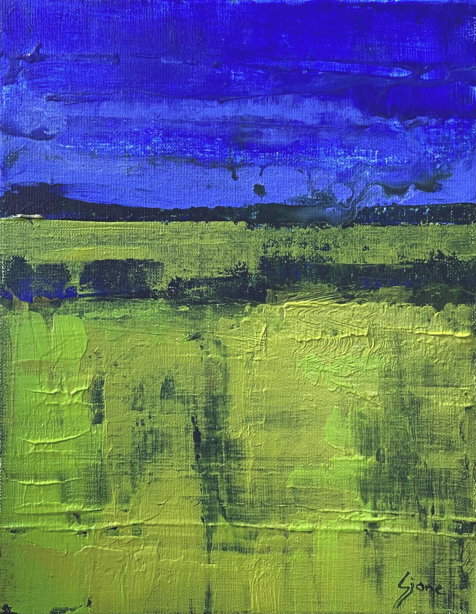 Het landschap is mijn grootste inspiratiebron. In de zomer heb ik veel buiten geschilderd. Mijn landschappen zijn kleurrijk en sterk geabstraheerd. Op het moment zijn mijn landschappen abstract.