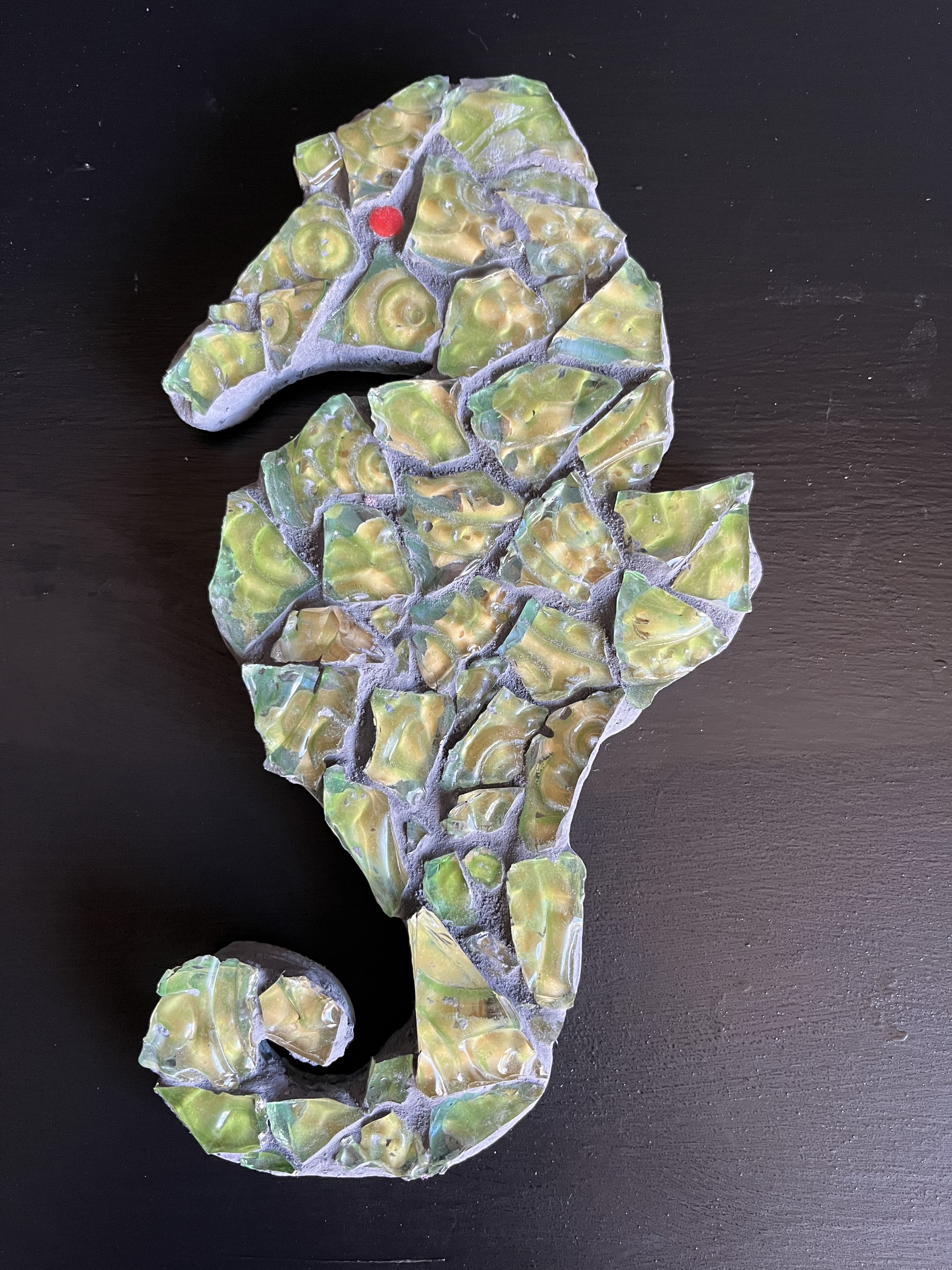 Kleurrijke en warme mozaïek gemaakt met liefde. Wij maken samen grote projecten en óók onze eigen stukken. Het verwerken van verschillende materialen is een belangrijke kenmerk van ons werk.
