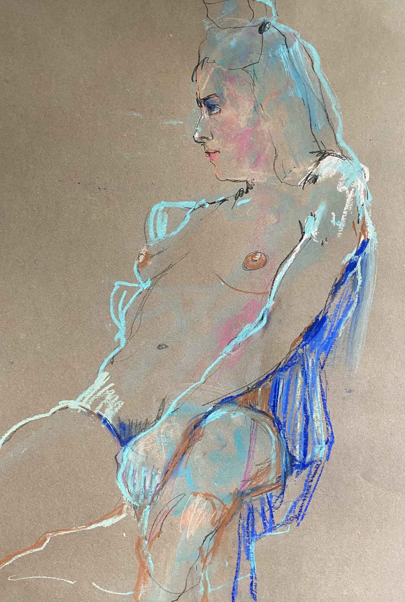 Naakt Model Vrouw Gemengde Techniek Pastelkrijt Potlood Bruin Kraftpapier