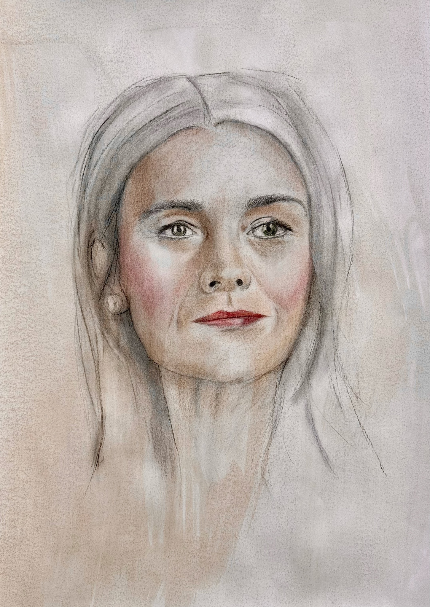 Expressief Portret Papier Realistisch Pastel Grafiet Vrouwenportret Bister