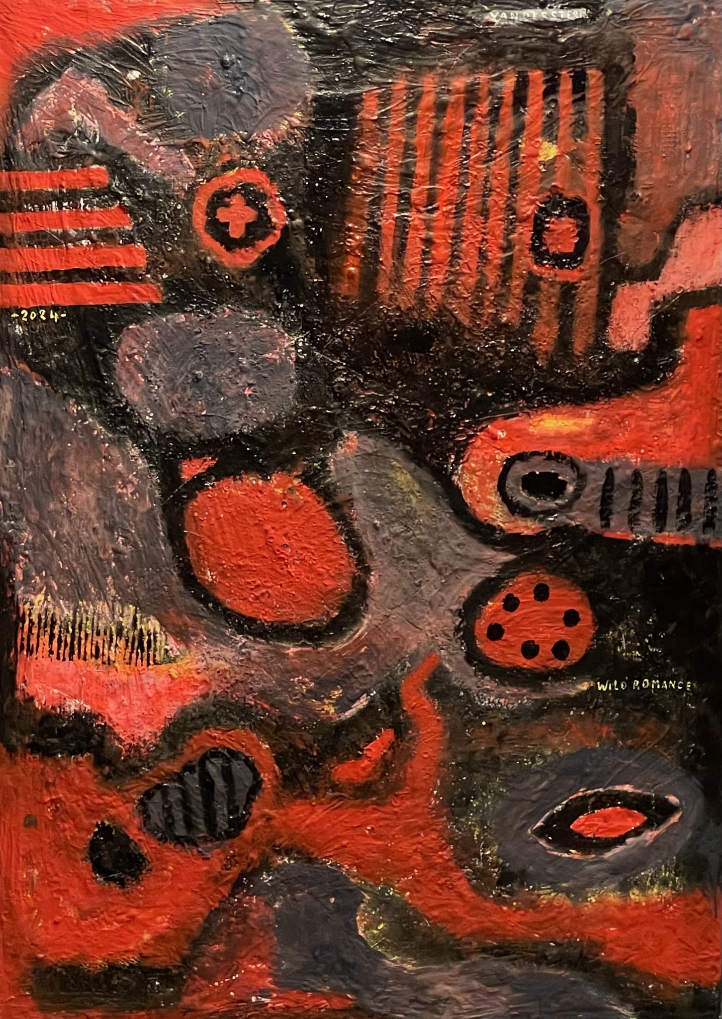 Rood en zwart zijn overheersende kleuren.