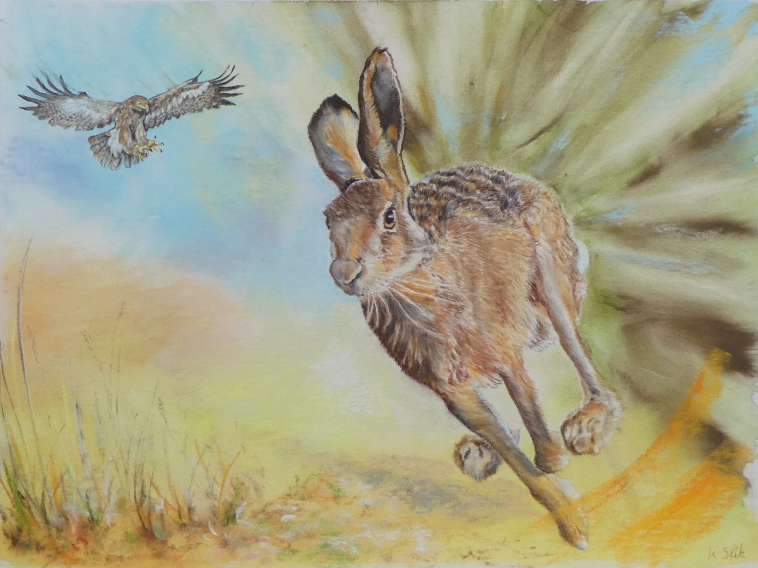 In de winter heb ik door de straat waar ik woon 2 maal een haas zien rennen. Daar kijk je dan wel van op, en ik bewonderde die lange poten van ze. Die zijn echt gemaakt om te rennen.