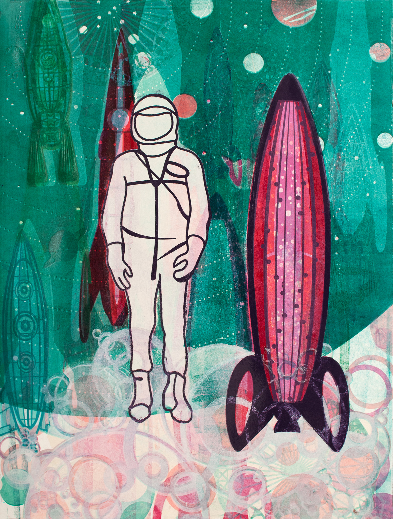 Astronaut Raket Hoogdruk Grafiek Kleurrijk Avontuur Ruimtereis