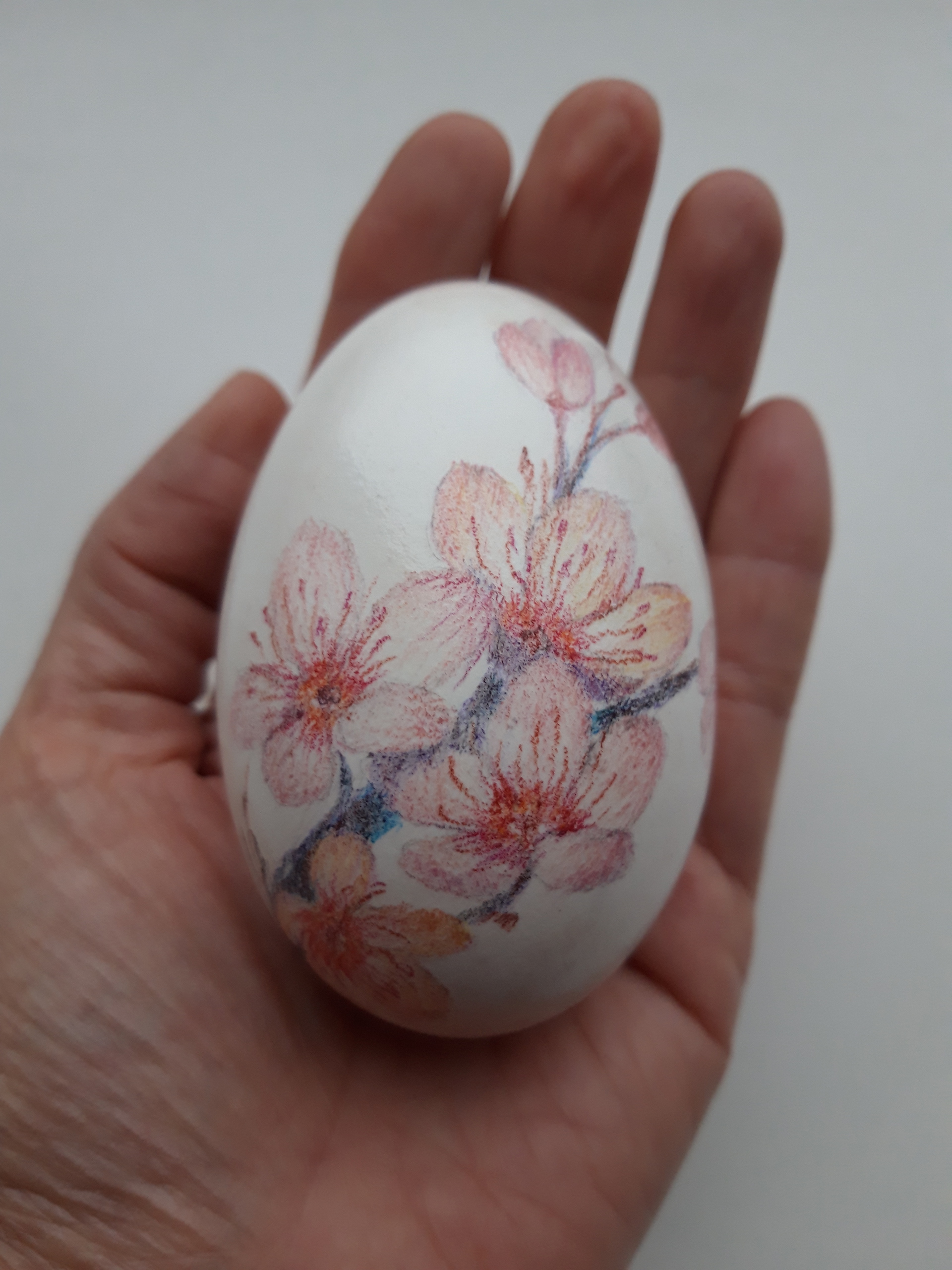 Kleurpotloden op ganzenei. Bloemen zijn door het heel ei geschilderd. Prijs is excl. verzendkosten, die zijn €7,95 binnen Nederland. Ei wordt zonder houder aangeboden.