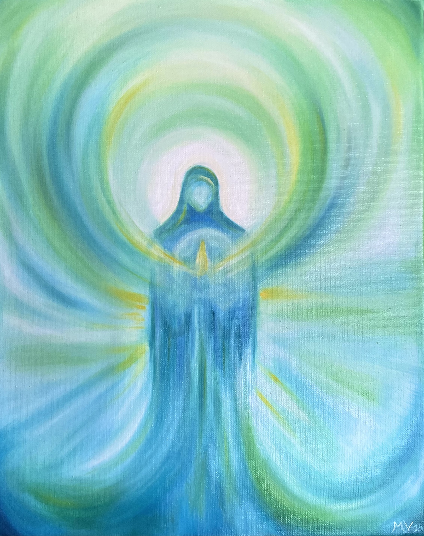 Spiritueel Groen Olieverf Engel Linnen Heling Intuïtief Visionair Myrtle Vreedenburgh Kleurenpad