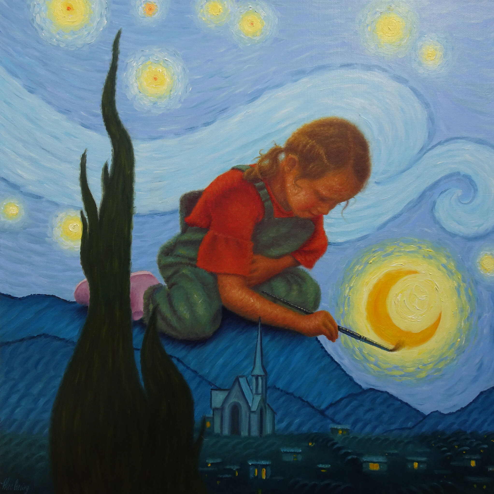 Meisje Blauw Licht Maan Van Vuur Sterren Gogh Sterrennacht