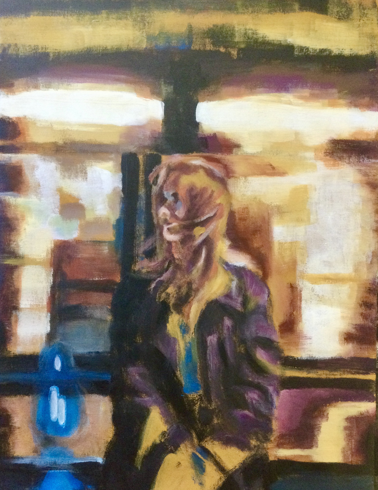 Een dame wacht op verbinding terwijl een metrostel achter haar voorbij dendert. Onder de straten van elke grotere stad brengt de metro reizigers naar hun werk, naar huis, naar een afspraak, naar hun bestemming. Elk met een uniek verhaal, gehaast, slenterend, eenzaam, wachtend, zoekend, slapend, dromend, ...De werken geven een blik op de vluchtige verhalen die zich onder de straten van de stad afspelen.De werken geven een blik op de vluchtige verhalen die zich onder de straten van de stad afspelen.De werken geven een blik op de vluchtige verhalen die zich onder de straten van de stad afspelen.