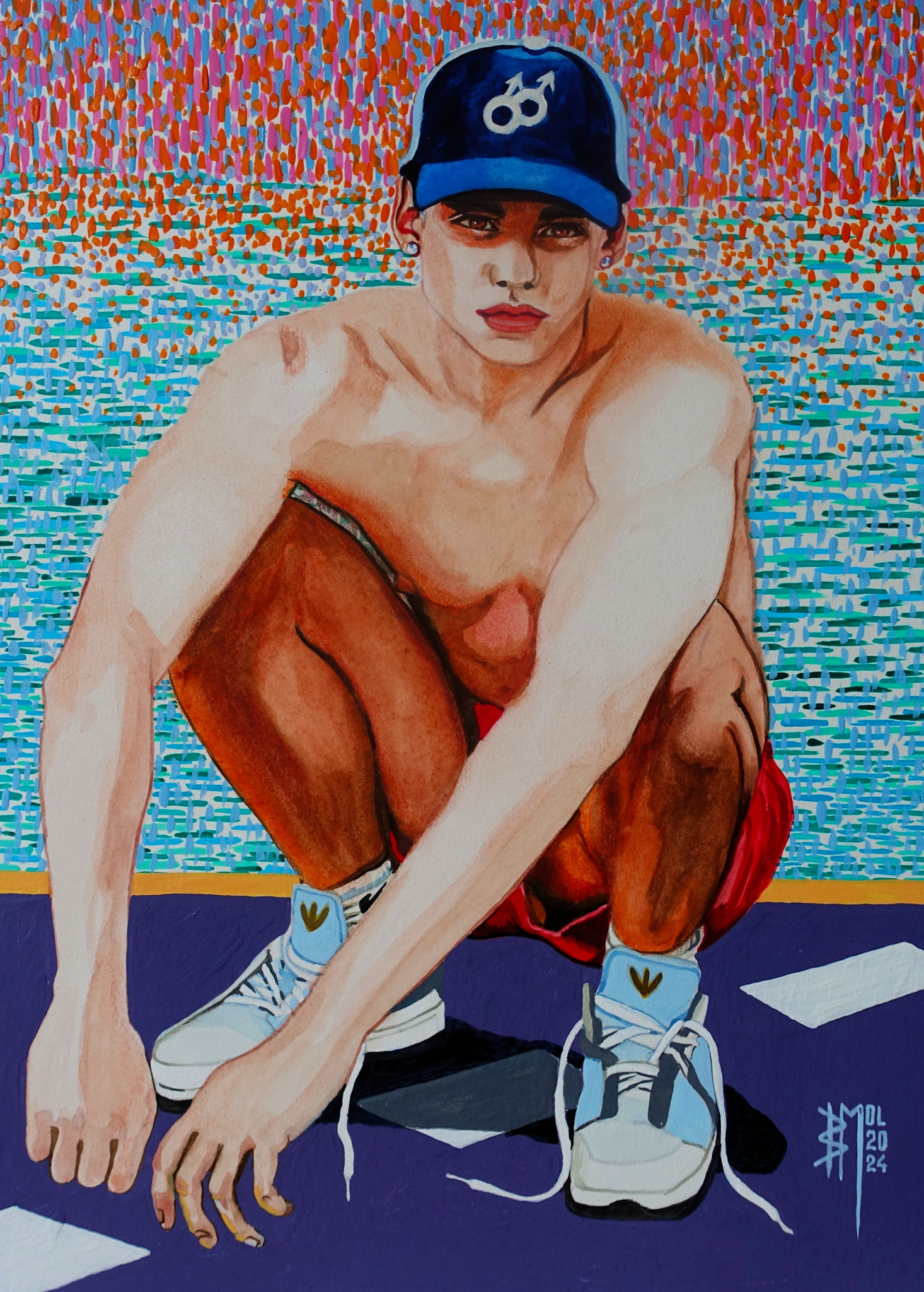Jongeman Baseballcap Pet Sneakers Bastiaanmol Bastiaanmolart Painting Illustratie Rotterdam Gay Gayartist Queerart Lhbti Gayboys Malemodel