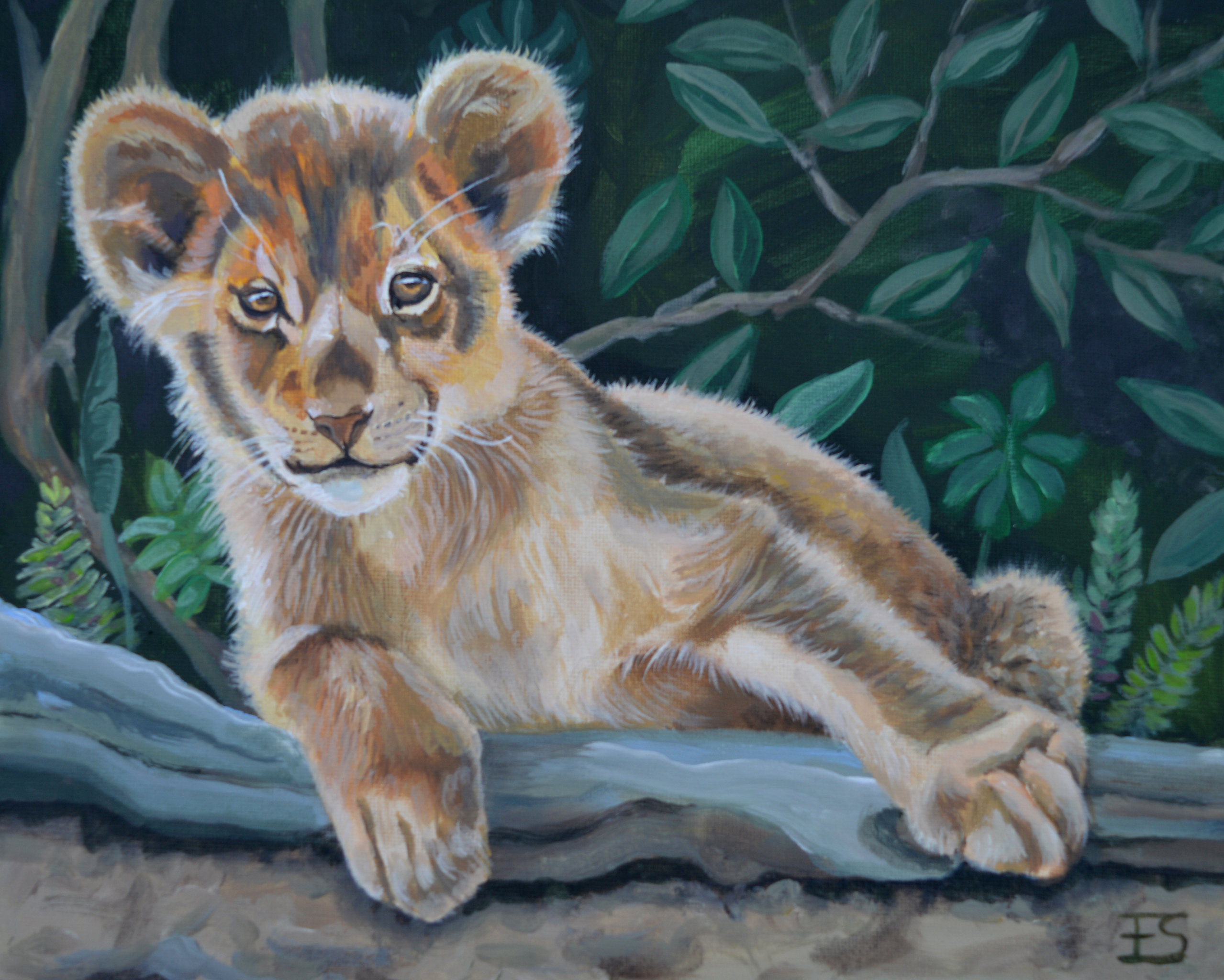 Voor de oudste kleindochter van mijn vriendin heb ik dit schilderijtje gemaakt. Ze wilde een welpje, één van haar lievelingsdieren.