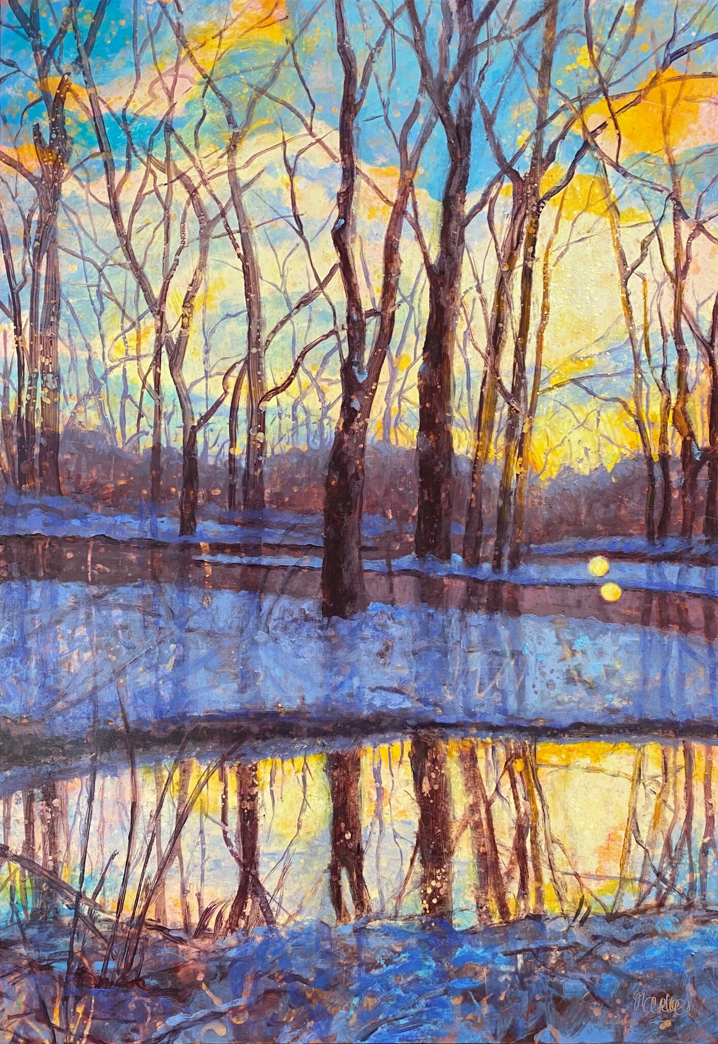 Schilderij Geel Landschap Paars Water Licht Liefde Olieverf Bomen Aarde Landscape Reflectie Bollen Earth Trees Energy Reflection Energetisch Lichtwerker Grounding Orbs Marloesbuigelboering