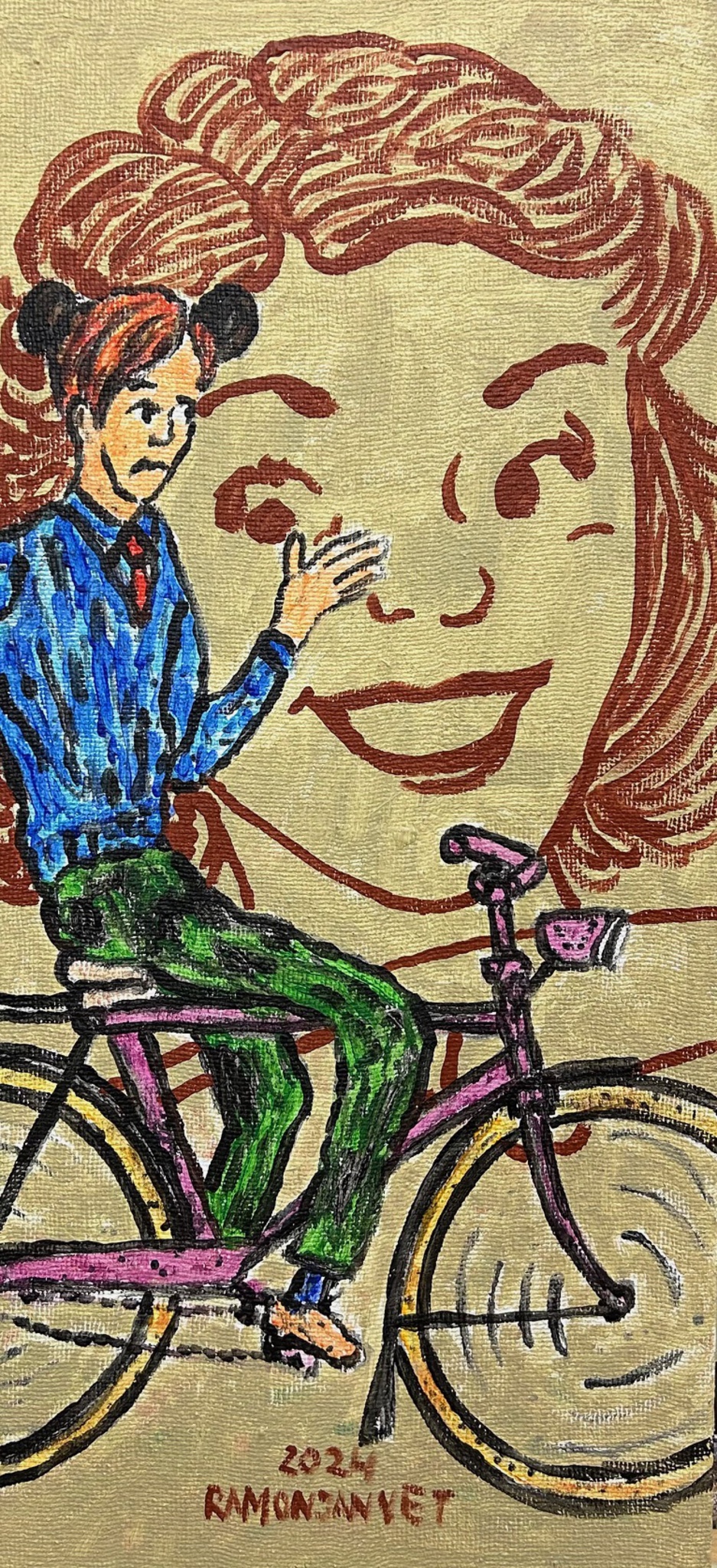 Acryl Portret Kunst Amsterdam Holland Fietser Illustratie Bike Verf Vet Kunstuitleen Popart Gallery