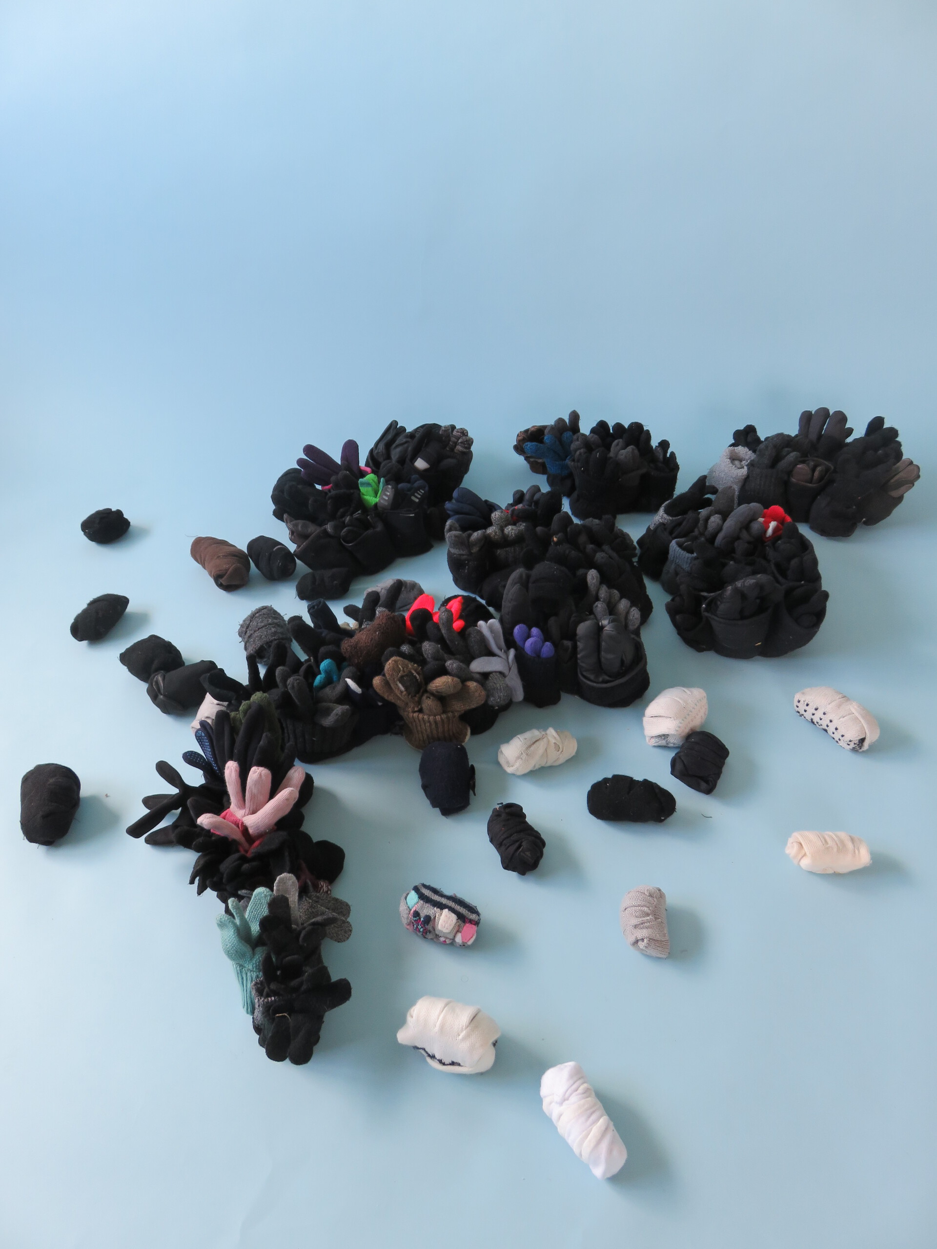 installatie op de grond van gevonden handschoenen