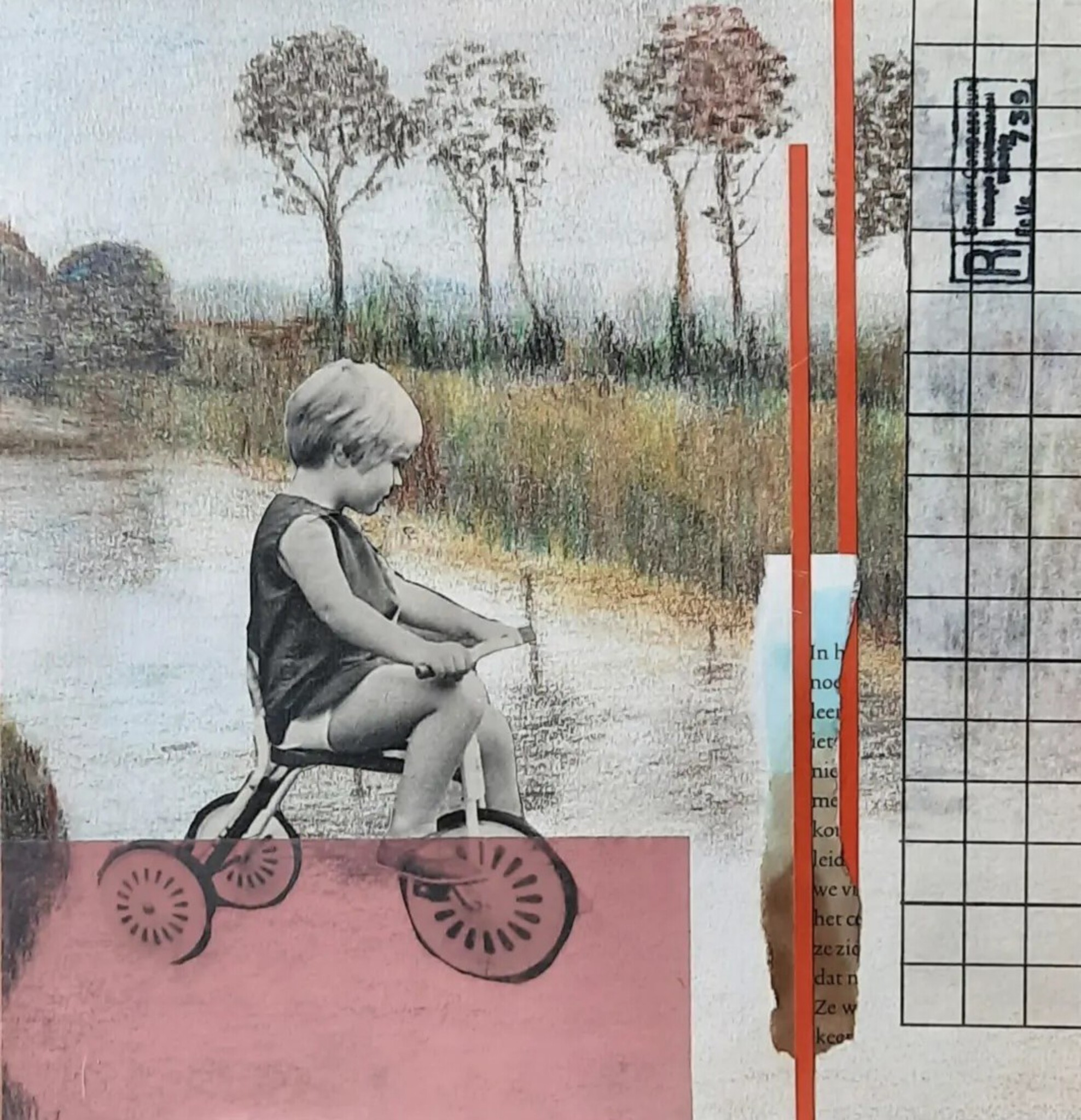 collage/ kleurpotlood op papier/op hout