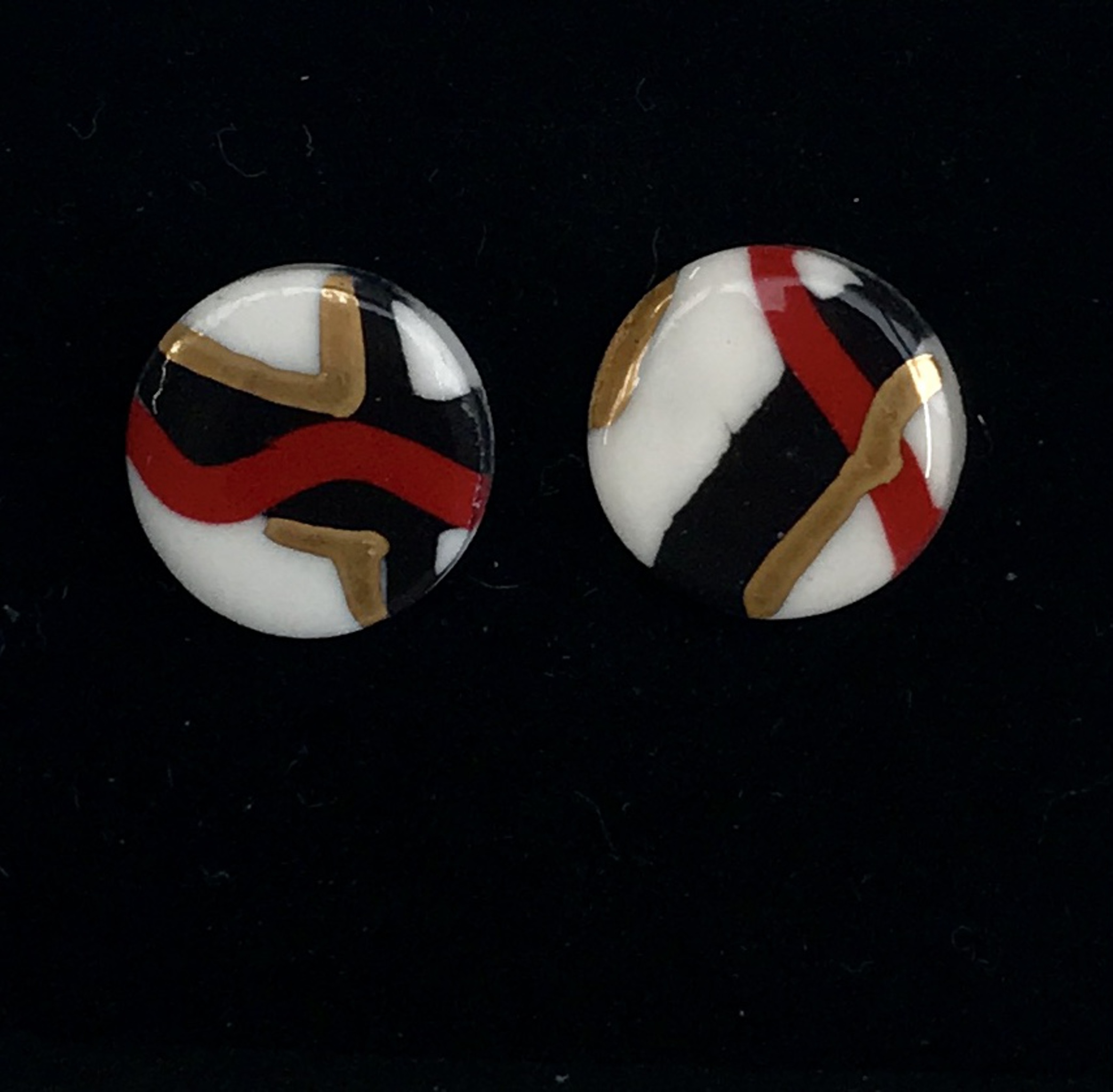Doorsnede 10 mm / met stains en goudluster / 3x gebakken / zilveren oorstekers Prijs is incl. doosje en verzendkosten binnen Nederland
