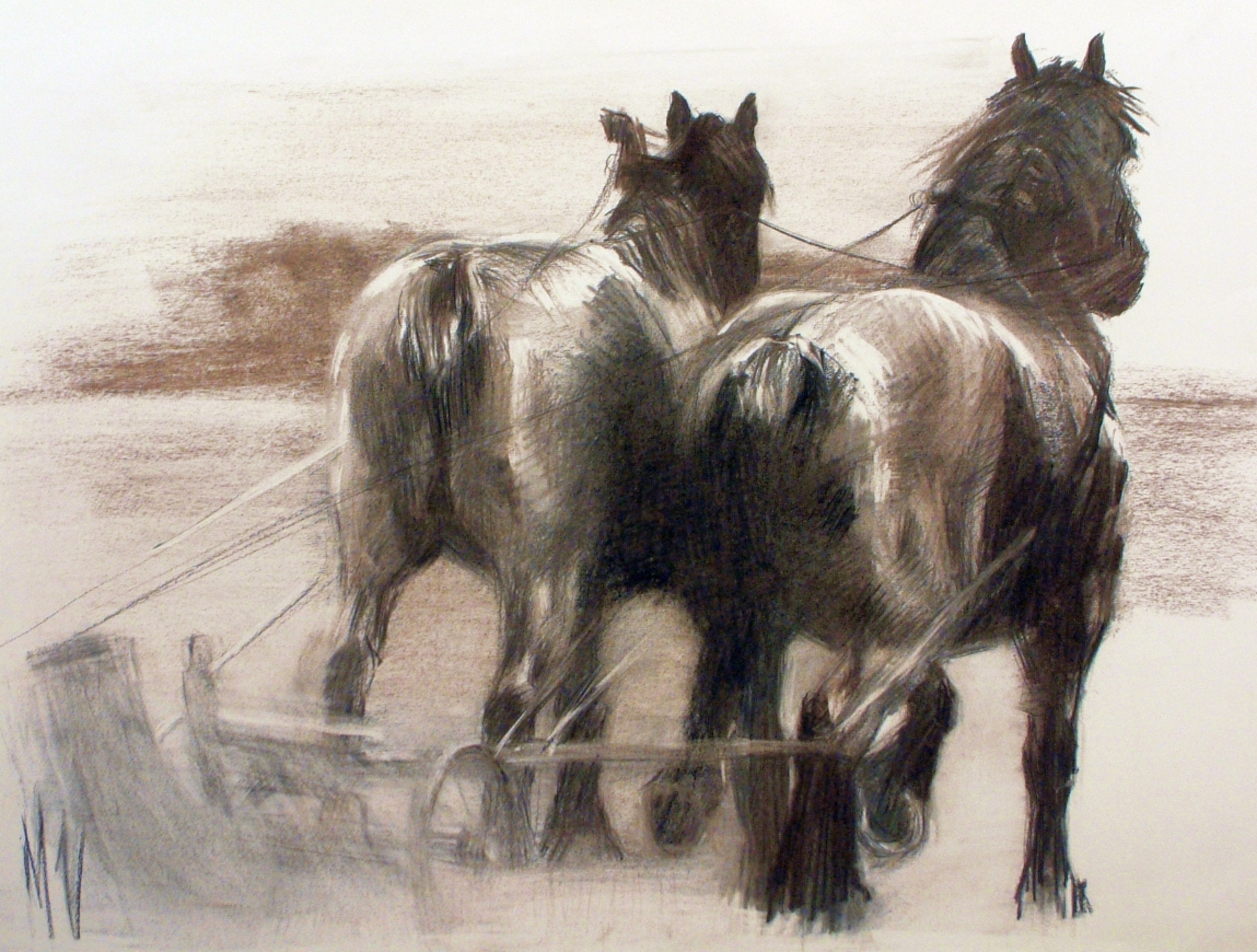 Tekening Natuur Houtskool Paard Drawing Horse Charcoal Nature Belgisch Trekpaard Belgium Field Akker Ploeg Working Plough