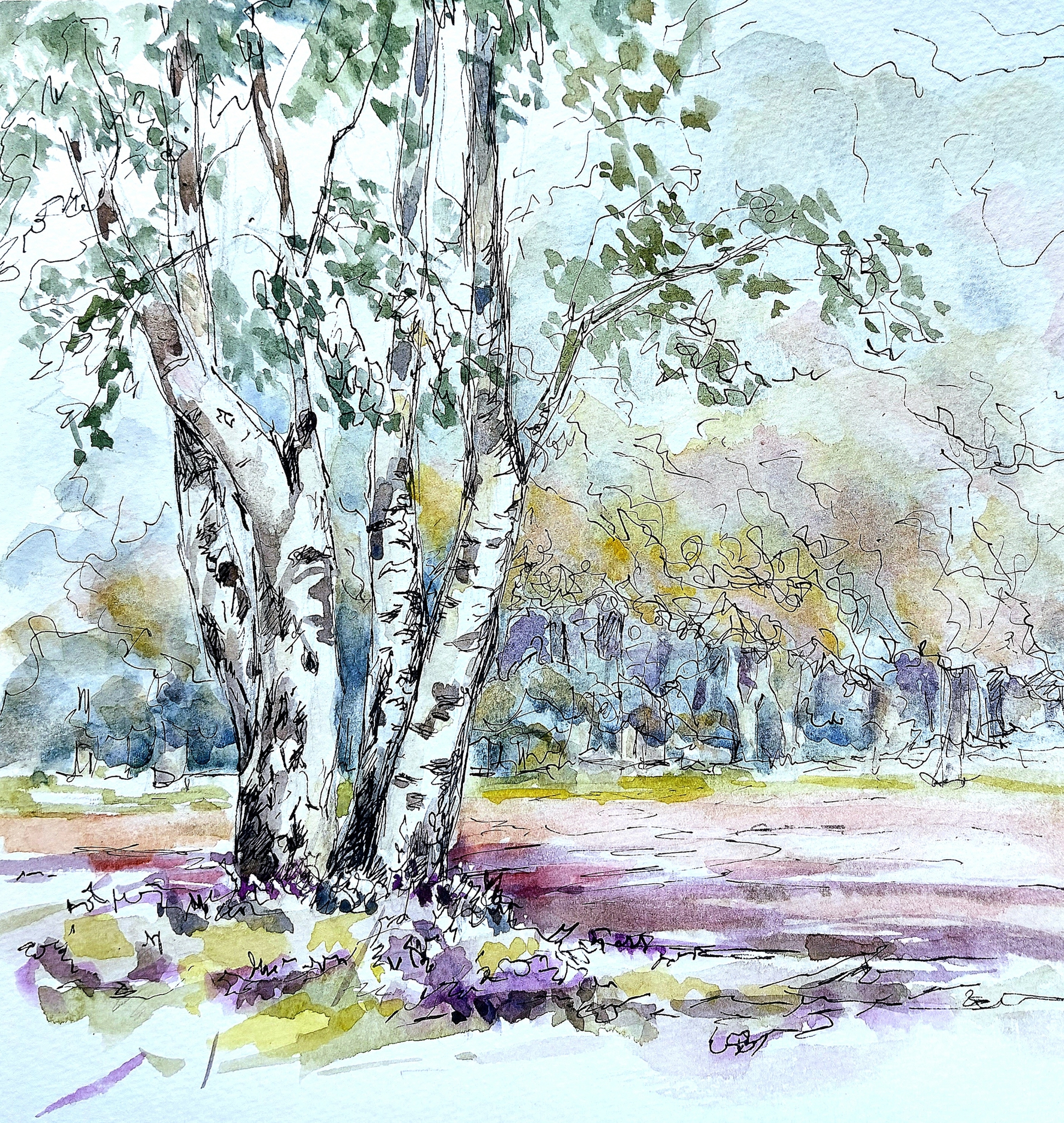 Berken, en plein air geschilderd op het oude exercitieterrein bij Deventer.