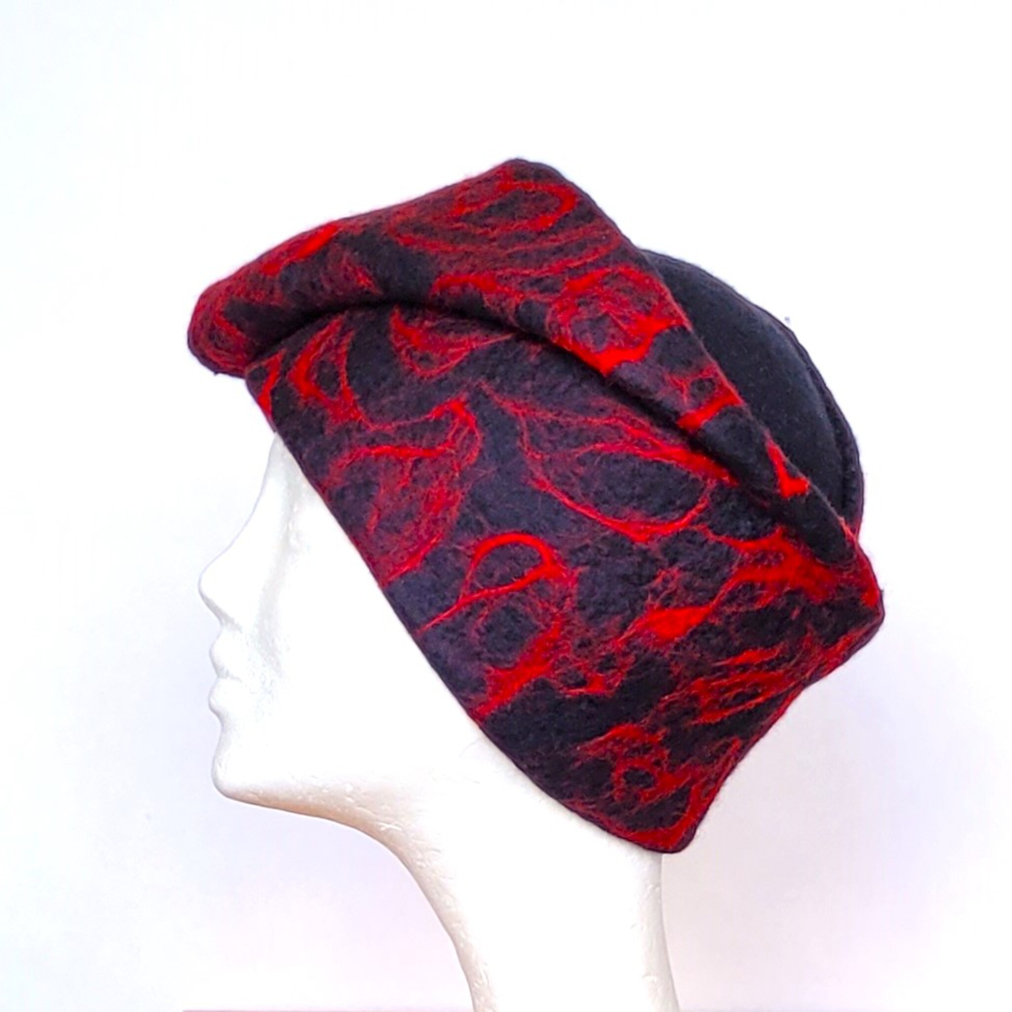 Zwart met rode hoed, van merinowol vervilt