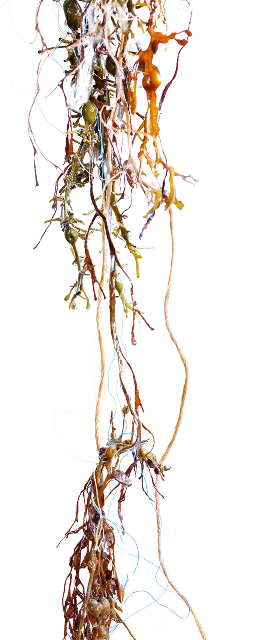 Zeewier van het strand naar het fotostudio. Van een prop bruin/groene drap tot een kleurrijk kunstwerk.