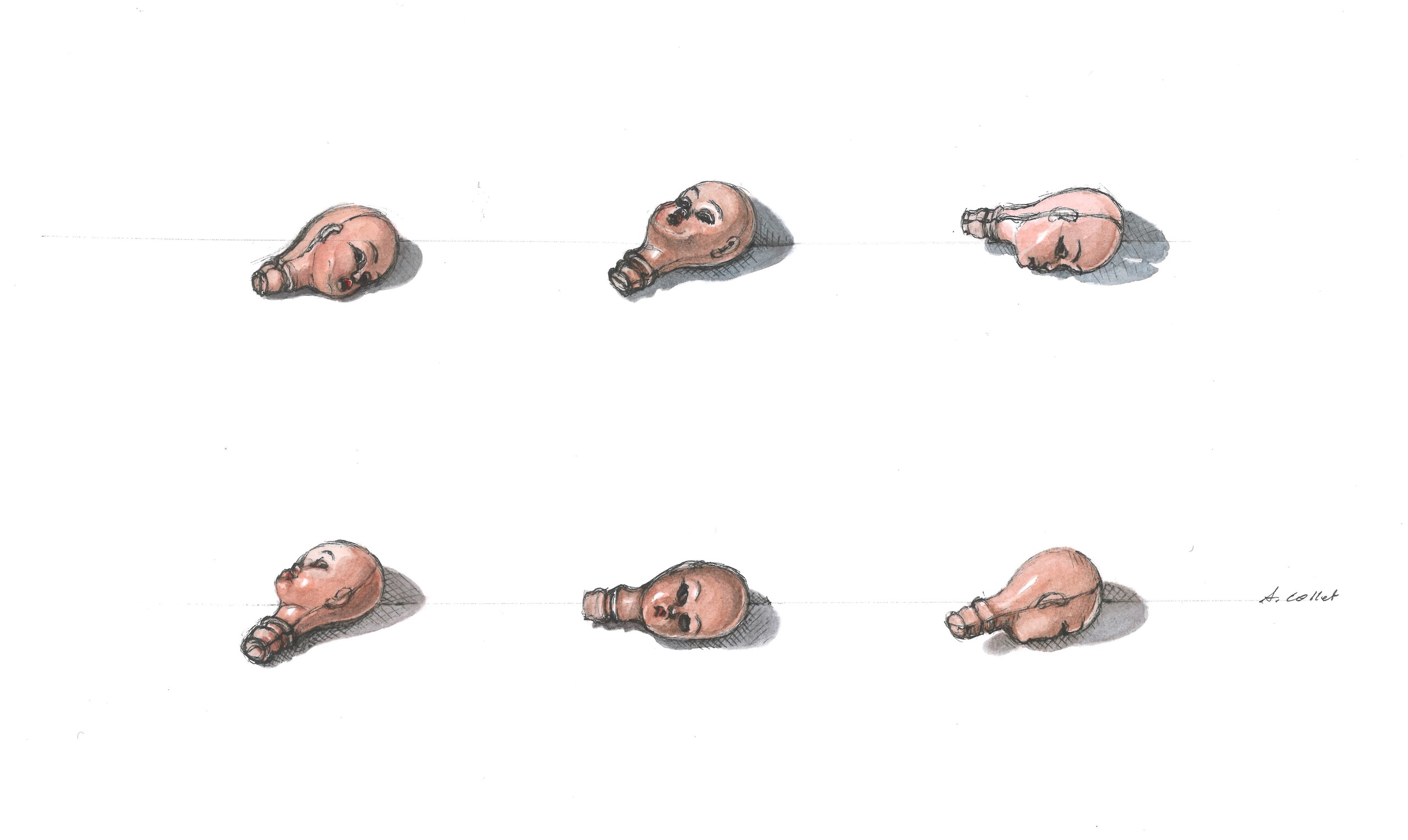 Schilderijen, tekeningen, beeldhouwwerken, collages, patchwork, poppen en meer beeldend werk van kunstenares Annick Collet