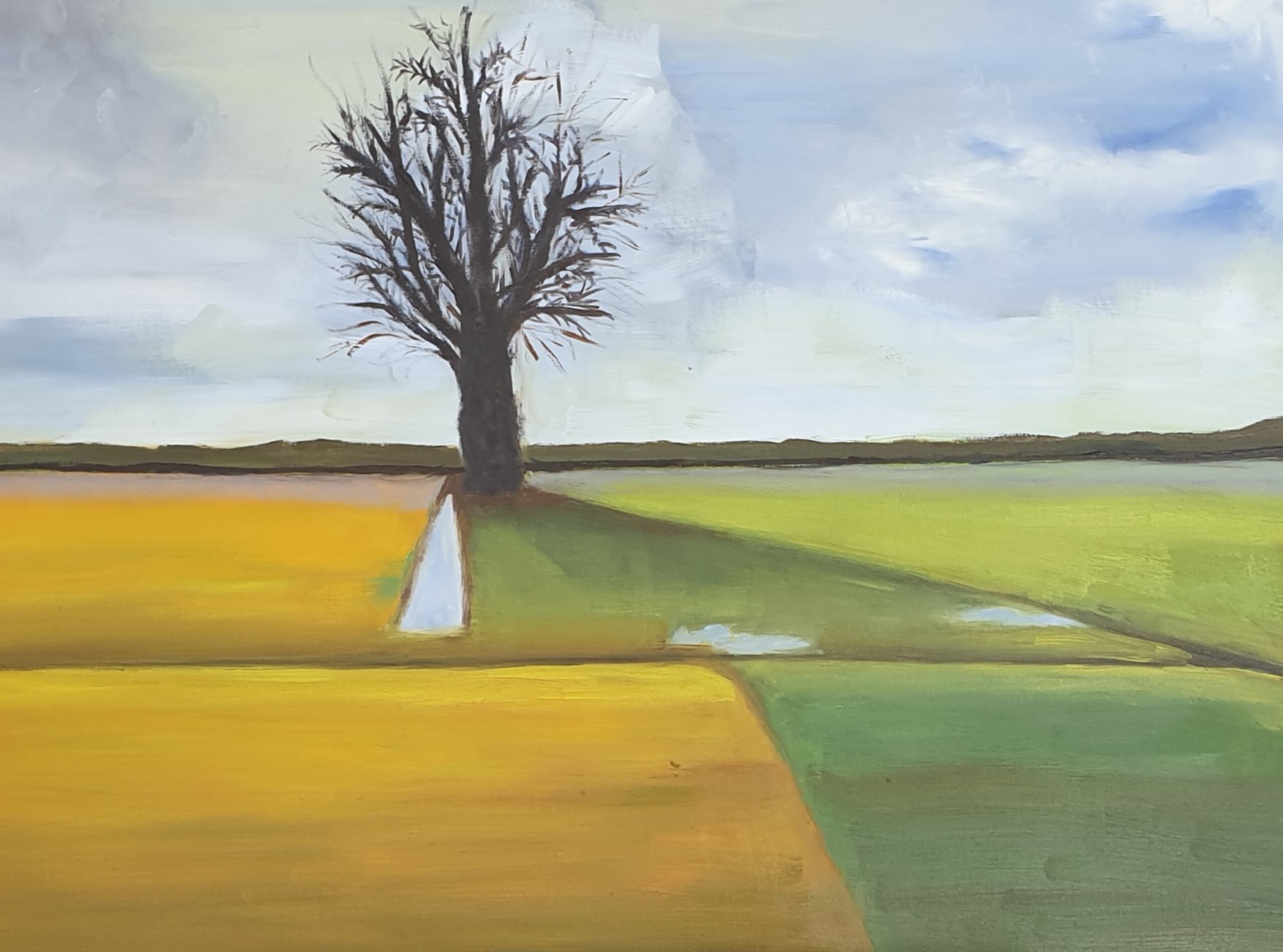 Mijn interesse gaat uit naar vlakken en lijnen van waaruit de wereld om ons heen is opgebouwd. Door deze zichtbaar te maken ontstaan er figuratieve schilderijen die in hoge mate vervreemdend werken.