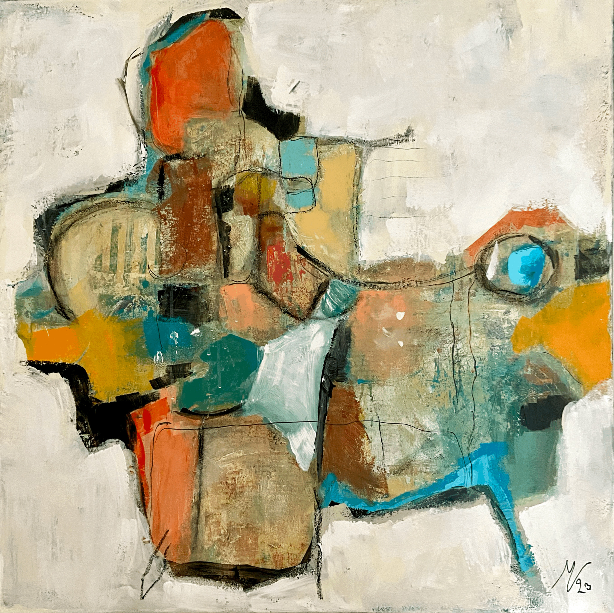 Al schilderend laag over laag, neemt mijn verhaal dat in mijn gedachten ontstaat het over. Stap voor stap, begeef ik mij in het onbekende. Ik houd van het ruige doorschijnend, de andere lagen nog terugzien. Benieuwd waar ik uitkom. Altijd blijft mijn werk niet af, zoals het leven zelf.