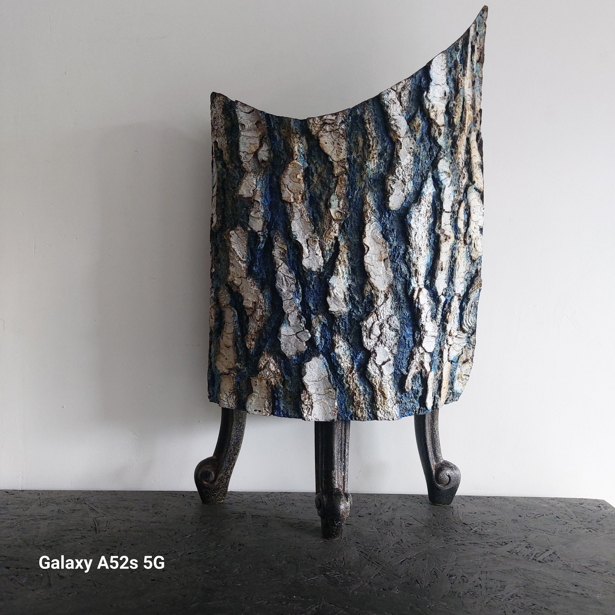 vaas van boomschors bewerkt met acryl
