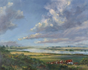 Paula Hondsmerk, schilder van de IJssel, het rivierenlandschap en de Sallandse Heuvelrug . Vooral de dynamische relatie tussen het landschap en de lucht, heeft haar altijd gefascineerd.