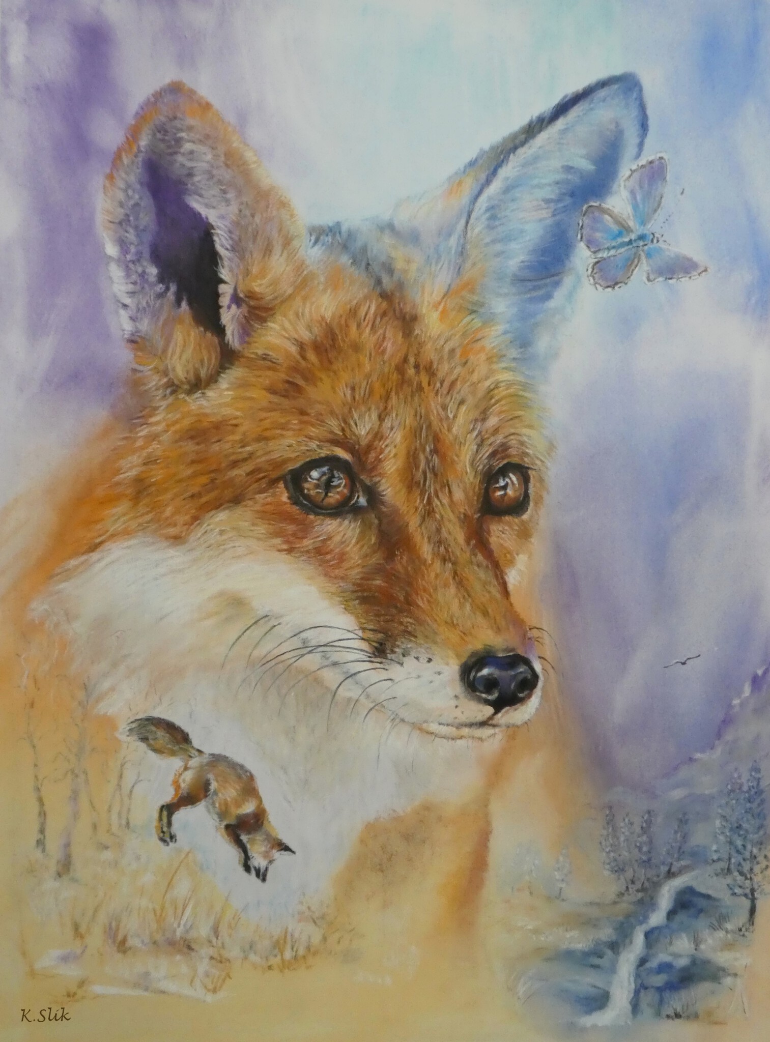 Ik heb 2 verschillende landschappen in deze tekening verwerkt. Vossen vind je ook in veel verschillende gebieden. Prachtige dieren.