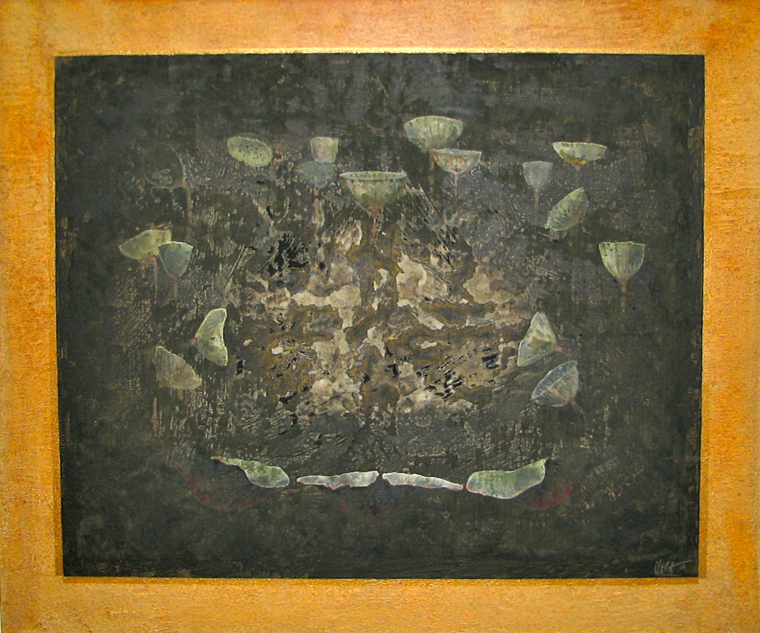 Zaadbol van de Lotus in reliëf.