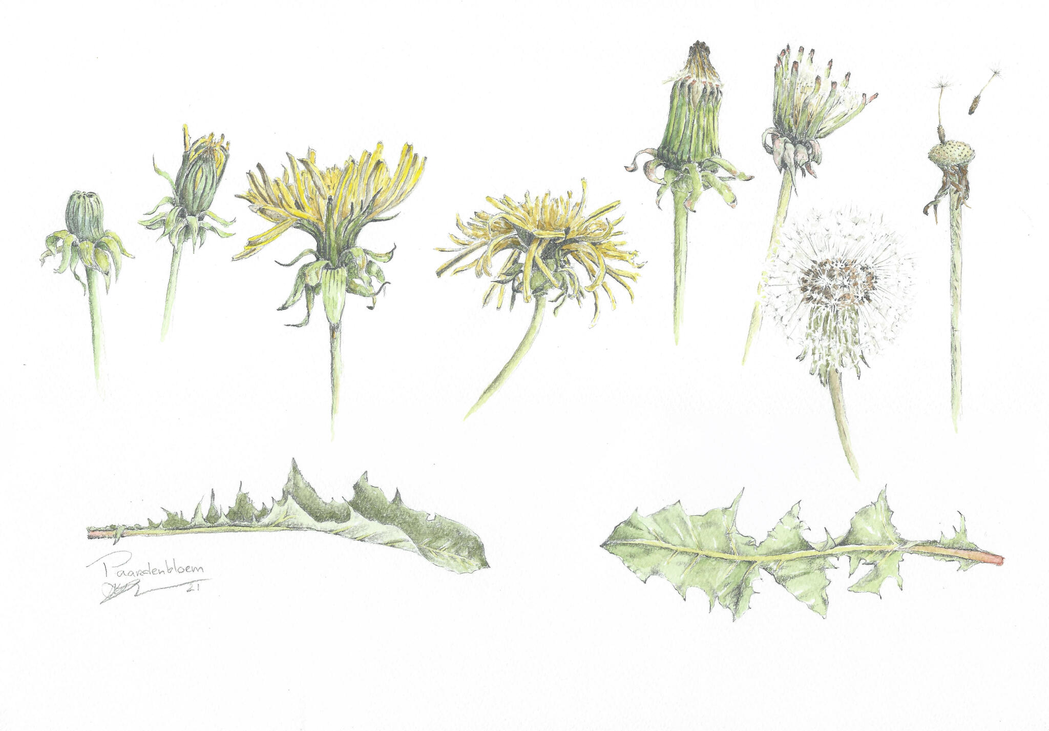 Paardenbloem in verschillende fasen van zijn bestaan. Hoe mooi de groei en uitbloei kan zijn.