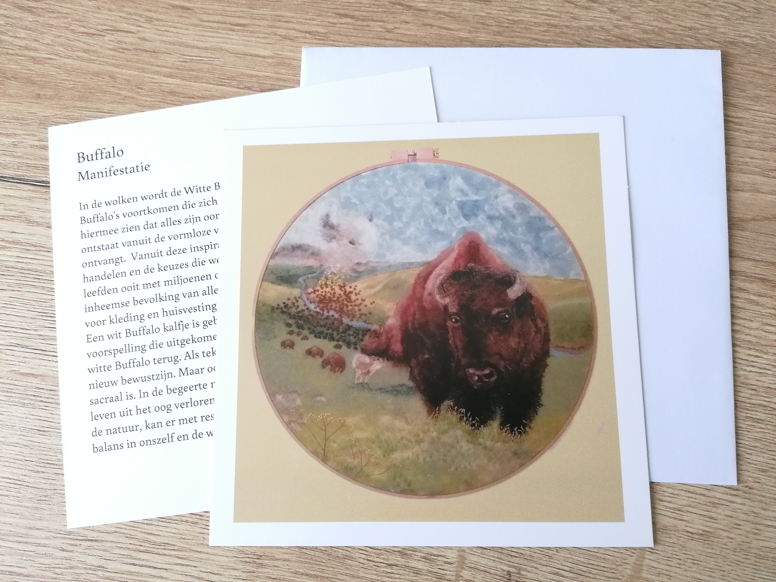 Kunstkaart van vilt kunstwerk Buffalo 14x14cm. Incl. envelop Ik wil een kunstkaart bestellen Vermeld bij bestellen om welke kunstkaart het gaat, aantal en het adres waar het naar toe gestuurd mag worden. Na overmaking van 7,37 euro (incl verzendkosten) wordt de kaart naar je opgestuurd. Betaalgegevens ontvang je nadat je een mail hebt gestuurd met de bestelling.