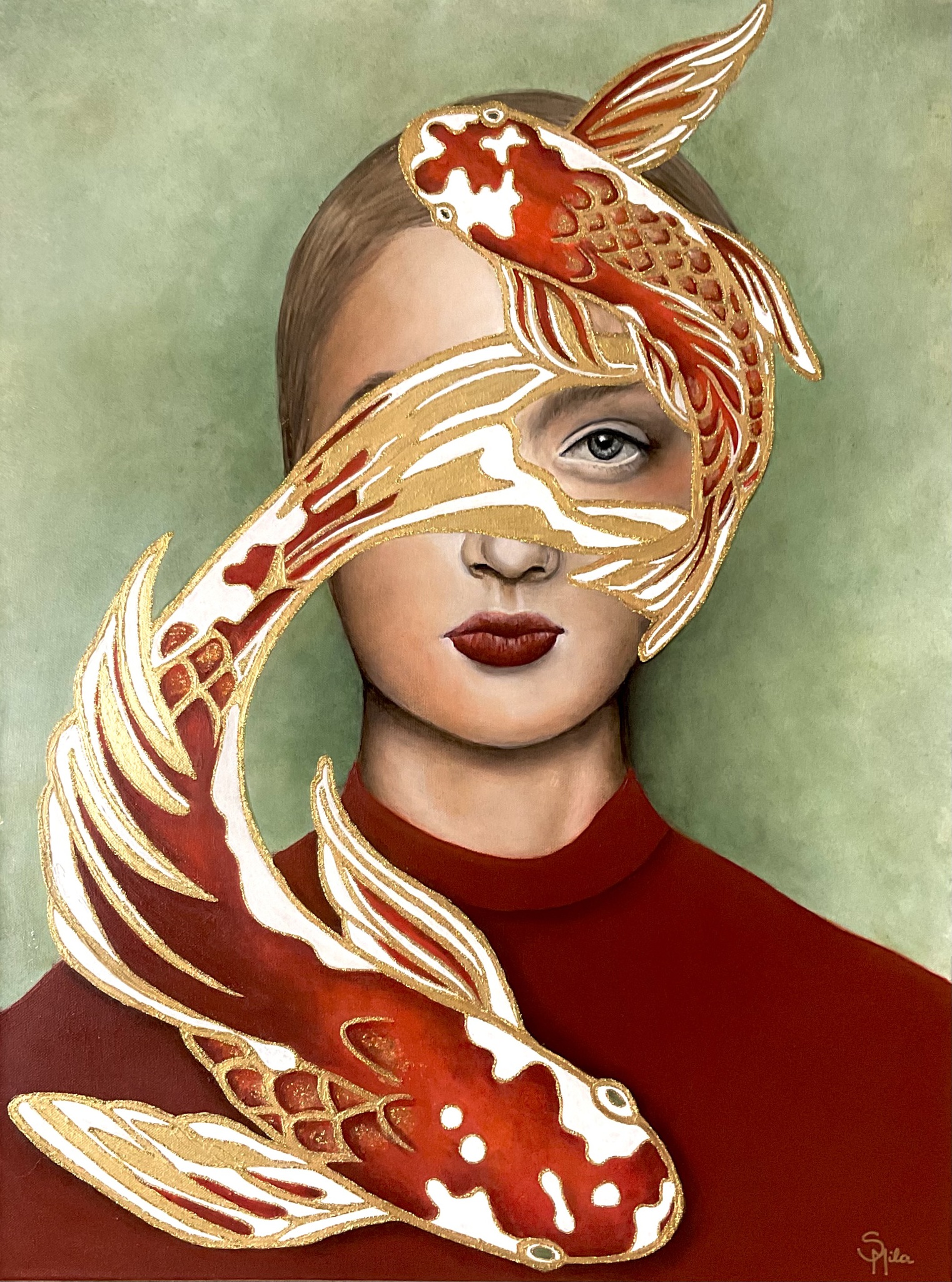 Goud Vrouw Portret Vis Surrealisme Realisme Bladgoud Koi