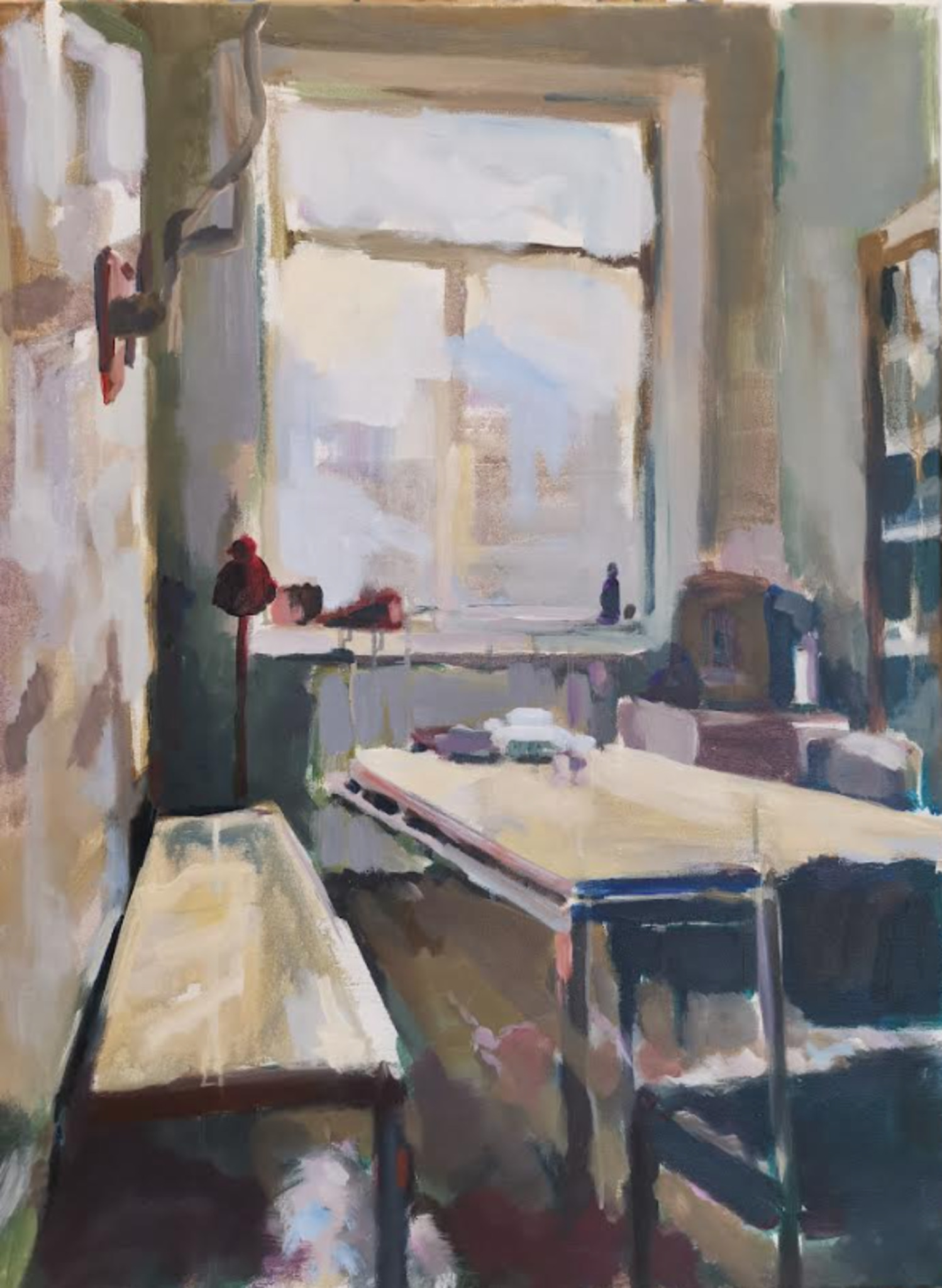 Van binnen naar buiten kijken staat centraal. Daarbij een focus op het verkennen van de diepte van kleur en de kunst van het expressief vastleggen van licht op doek.